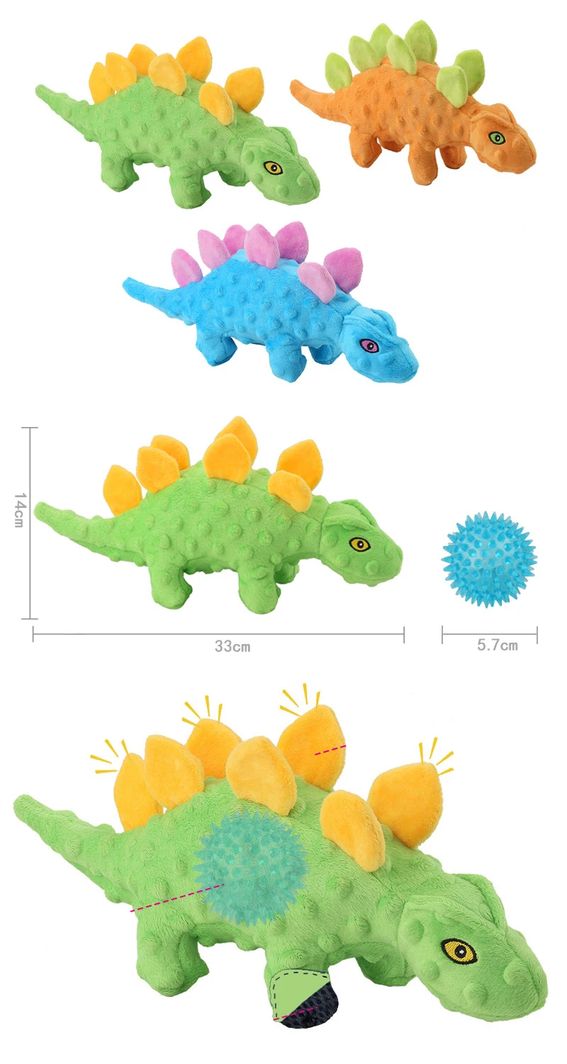 Joysing Pet Voice Toys Dinosaur Plush Chew Toy for Dogs to Relieve Boredom