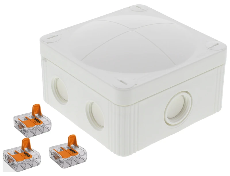 Wiska UK 10109675 COMBI Junction Box 407/WW/3221W 32A 95x95x60mm White Polypropylene IP66/67 c/w WAGO 221 Terminals · · · Material Polypropylene · · Material sealing gasket TPE · · Temp. range min -30 °C · · Temp. range max 100 °C · · Temperatures during install. -5 °C – 60 °C · · Protection class IP66 / IP67