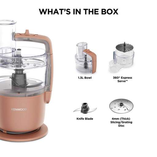 Brand – Kenwood – Capacity – 0.75 – Colour – Red – Description Ih – This food processor can chop, slice, grate and serve direct to your plate, – Finish – Plastic – Guarantee