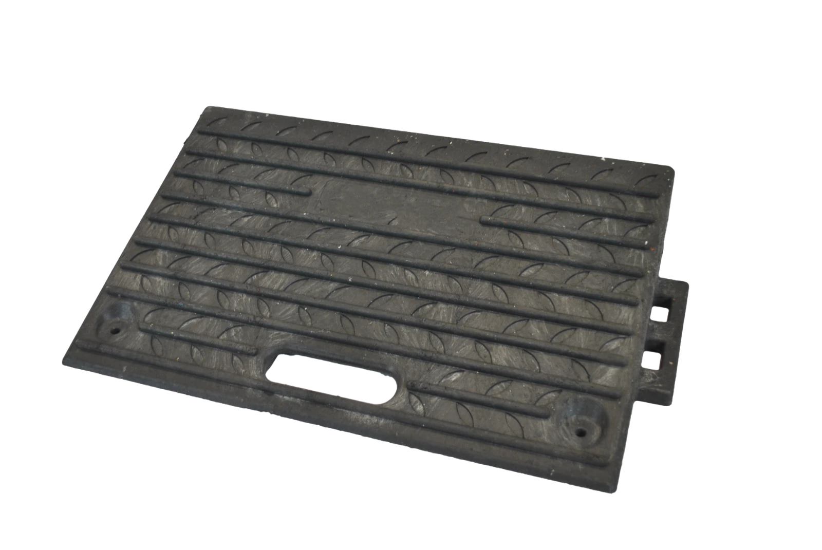 A short length heavy duty ramp allowing a vast range of vehicles and similar access over low-rise curbs. Capable of sustaining high loads, the ramp can be interconnected to create a continuous run. · · · Corporate identity can be embossed. · · 2 holes for bolting to the ground. · · Improved handle allows better grip when lifting. · · Open channel to the back for water or cable · · Interlocking connection when used in a run. · · Sturdy grips prevents slips & falls. · · Chequered pattern for extra grip · · Easy to install