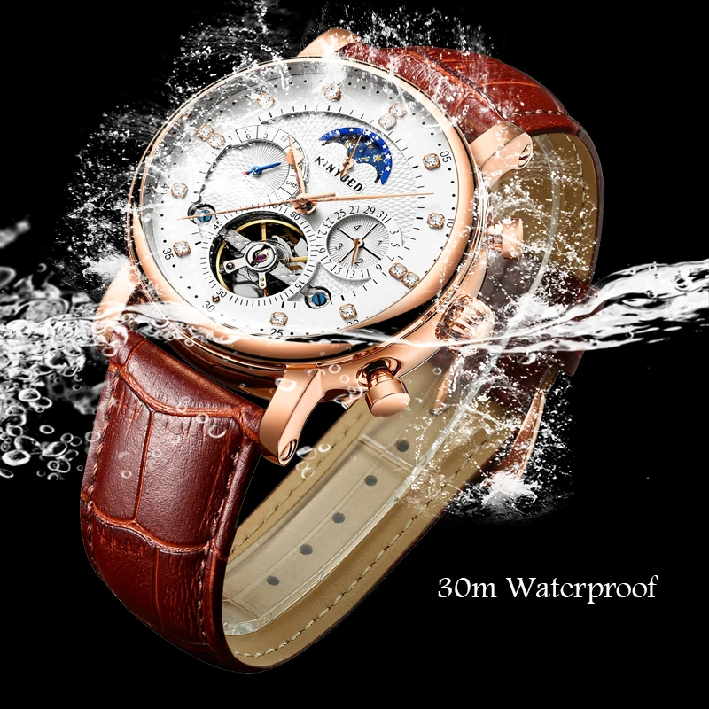 KINYUED J025 Leather Week Display Man Wristwatch Automatic Business Man Mechanical Automatic Gentleman Watch