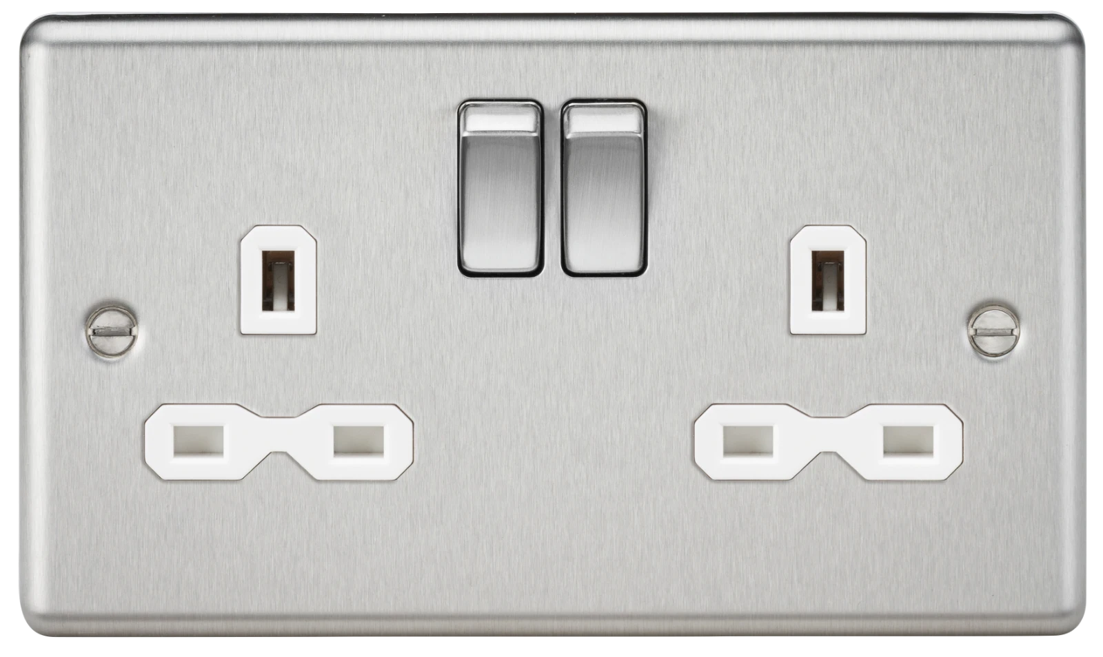 Knightsbridge MLA 13A 2G DP Switched Socket with White Insert – Rounded Edge Brushed Chrome