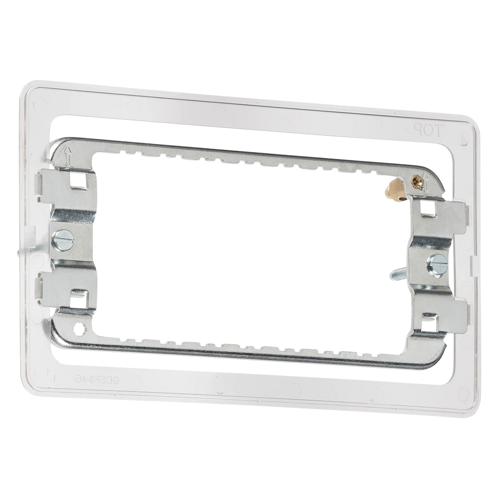 For use with the Screwless Grid Faceplates only. · · · 3-4 module grid mounting frame · · Complete with gasket · · For use with 3G and 4G Screwless Grid Faceplates