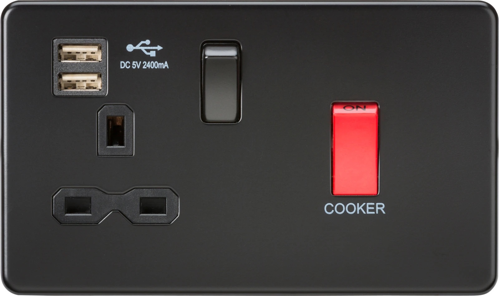 Knightsbridge MLA 45A DP Switch and 13A Switched Socket with Dual USB Charger 2.4A – Matt Black