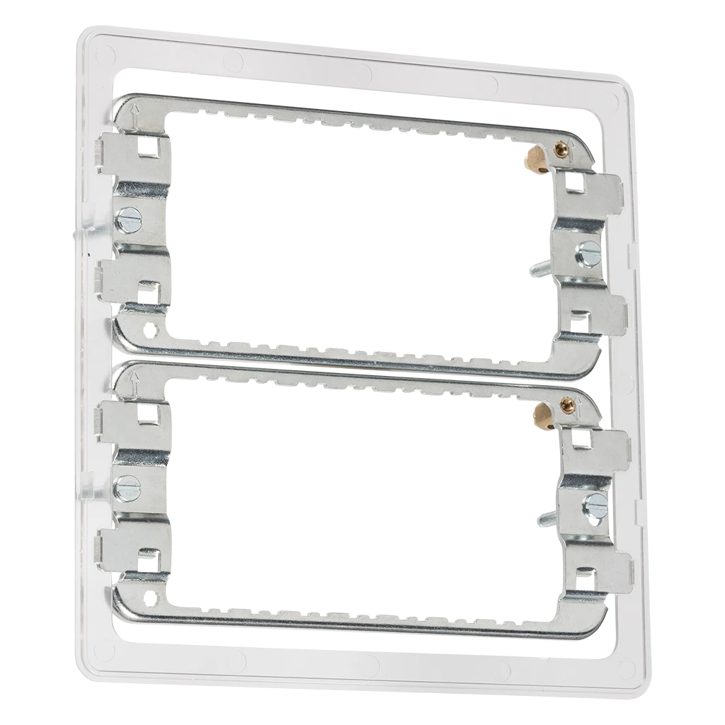 For use with the Screwless Grid Faceplates only. · · · 6-8 module grid mounting frame · · Complete with gasket · · For use with 6G and 8G Screwless Grid Faceplates