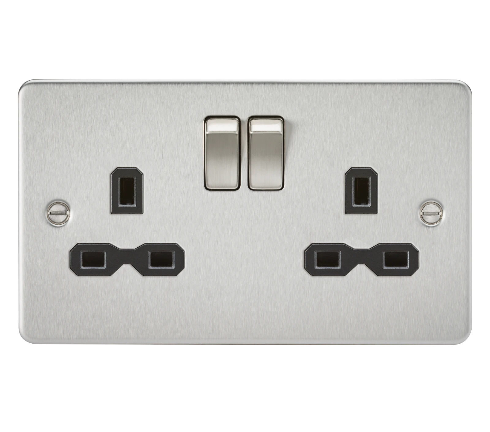 Knightsbridge MLA Flat plate 13A 2G DP switched socket – brushed chrome with black insert