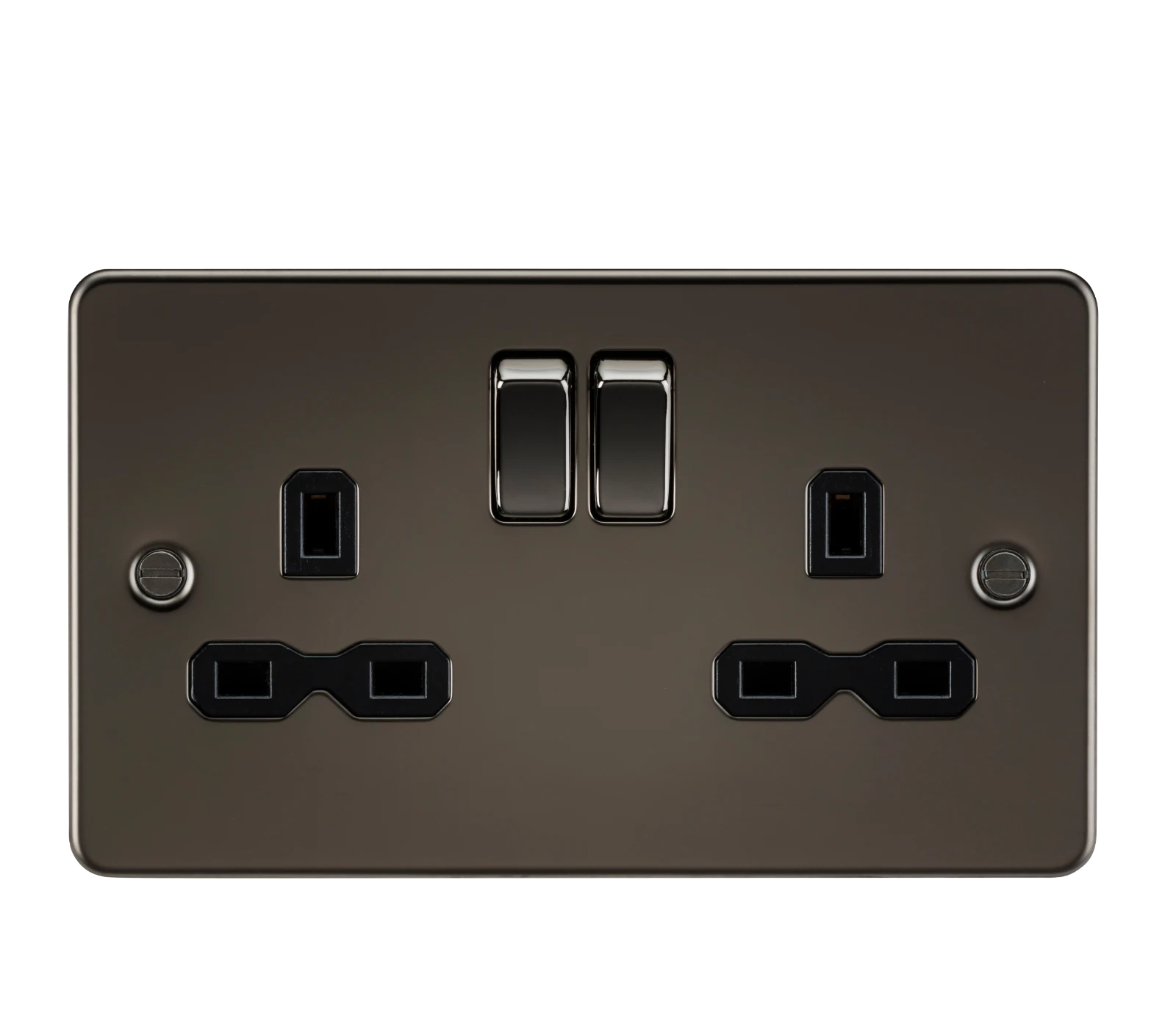 Knightsbridge MLA Flat plate 13A 2G DP switched socket – gunmetal with black insert