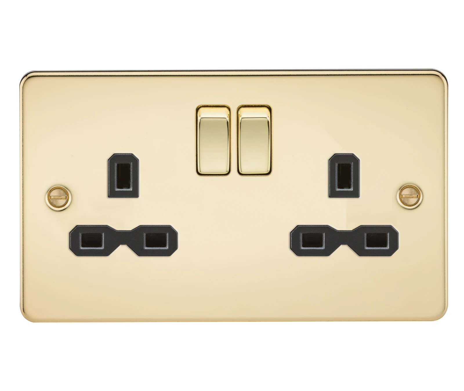 Knightsbridge MLA Flat plate 13A 2G DP switched socket – polished brass with black insert