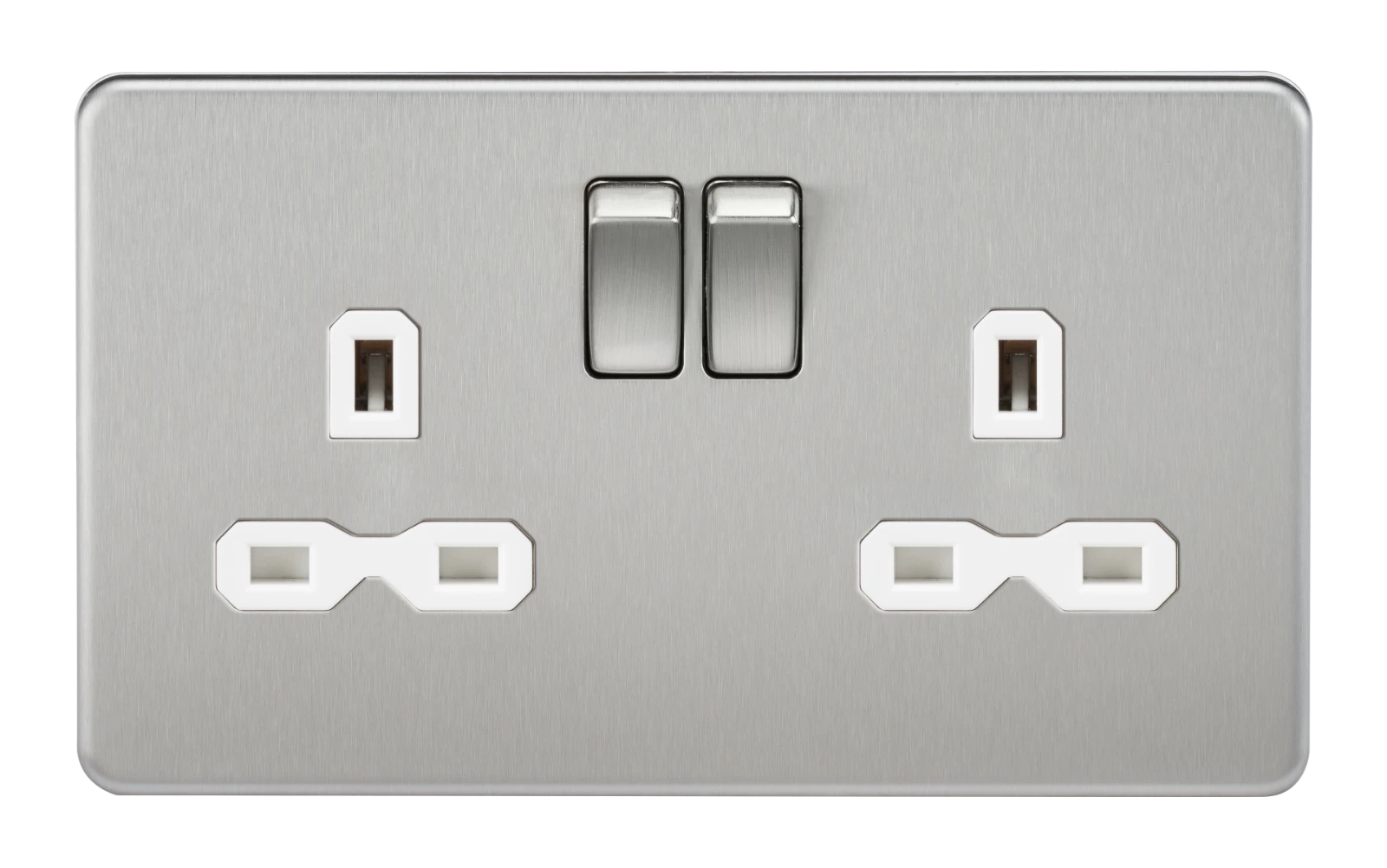 Knightsbridge MLA Screwless 13A 2G DP switched socket – brushed chrome with white insert