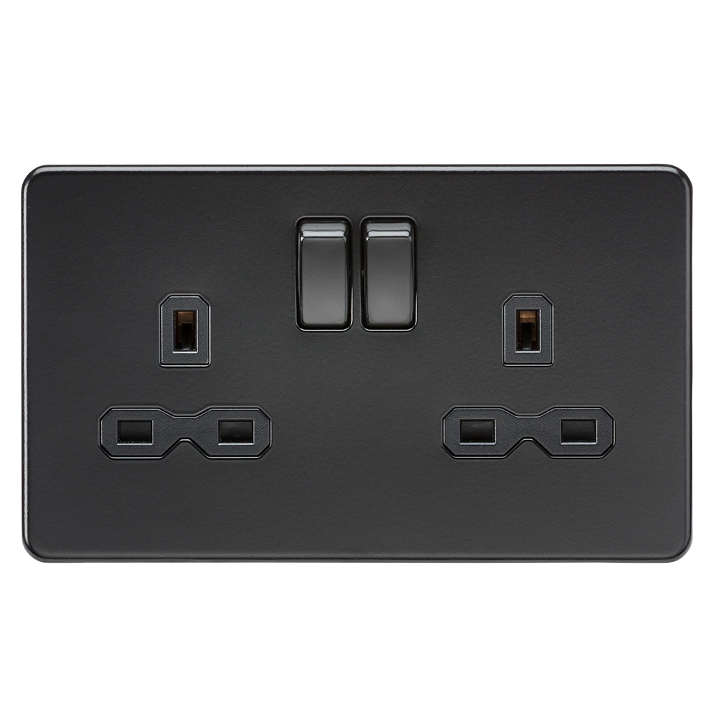 Knightsbridge MLA Screwless 13A 2G DP switched socket – matt black with black insert