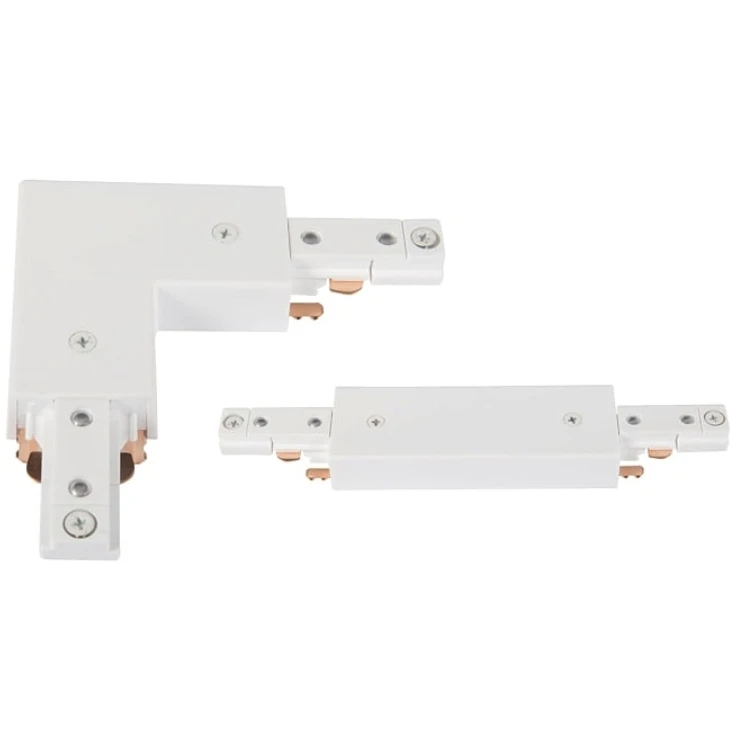 KSR6503WHT Escala Pro L/Straight Connector with Live Feed White. The Escala Pro single circuit mains track range have a vast range of track fittings to suit all scenarios. The track can be suspended or fixed to suit the installation. A range of accessories to create a track layout to your specification. · · · 240V Single Circuit Mains Track Accessory · · 16A Maximum Load · · Class I · · IP20