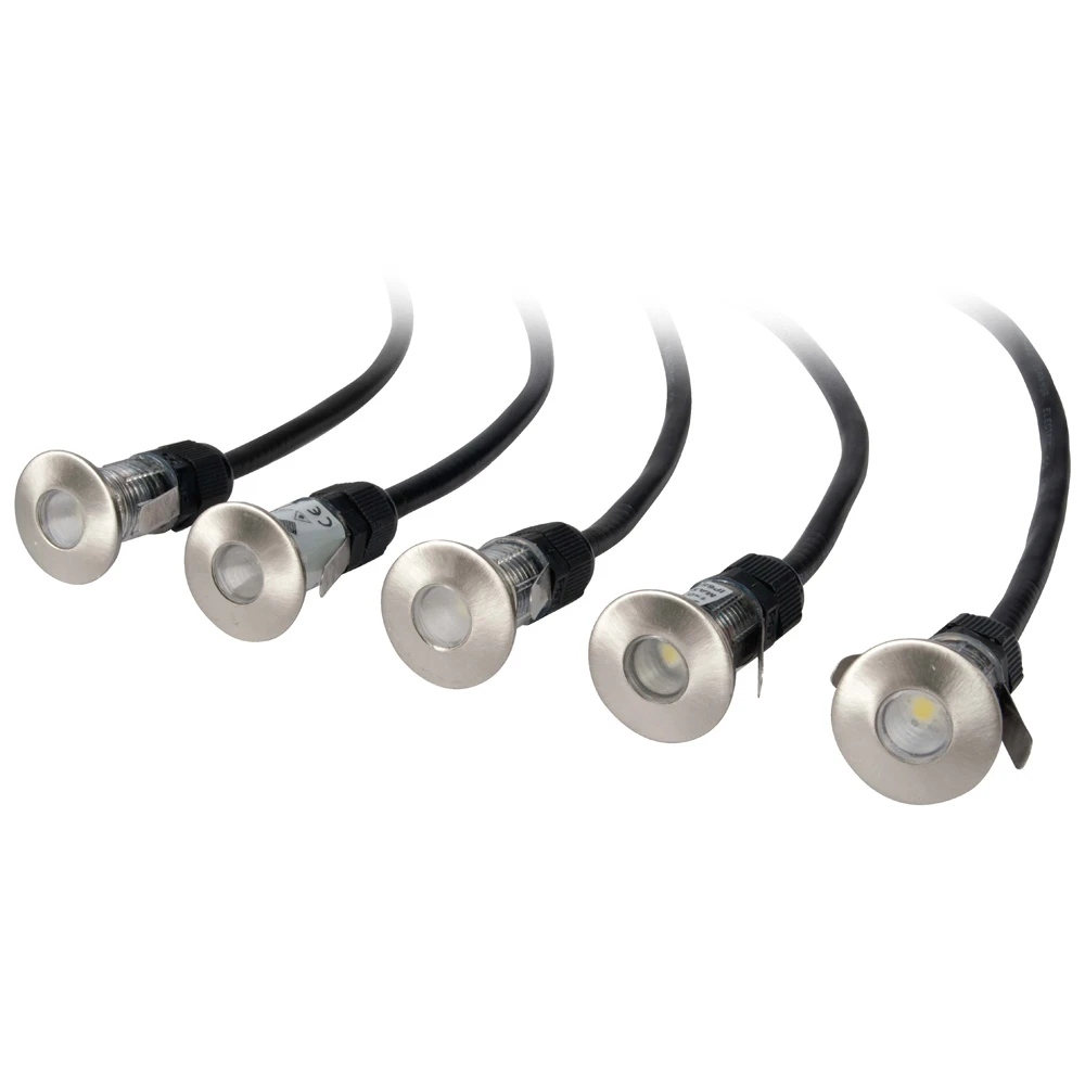 KSR Mini Cabello LED Recessed Light is made of plastic and AISI 316L stainless steel rim. This fitting is supplied as single unit which allows you to run up to 20 fittings off one SRDL283. It has an electrical efficiency of class III and IP67 protection r · · · Parallel wiring type · · 0.1w cool white LED · · Cool white LED · · Class III · · body-plastic · · rim-AISI 316L stainless steel · · These fittings are supplied as single units which allows you to run up to 20 fittings off one KSRDL283 (depending on cable runs) · · Please note these are to be wired in parallel · · Available in 3000K, 6000k or Blue LED · · Requires 12v constant voltage driver
