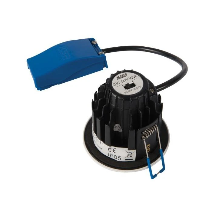 Firebreak Qr Select Dual Wattage & Multi Wattage Tilt · · · 5W/7W/9W Downlight and Quad CCT Selectable function · · 58° Beam Angle · · Class II · · IP65 · · CRI: Ra>84 · · 30/60/90 fired rated with solid timber joist and 30min fire rated with I-Joist and Metal Web Joists · · L70/B10 – 60,000hrs · · Compatible with all available Qr Tilt Rim options · · Must remain in free air space (cannot be covered in insulation)