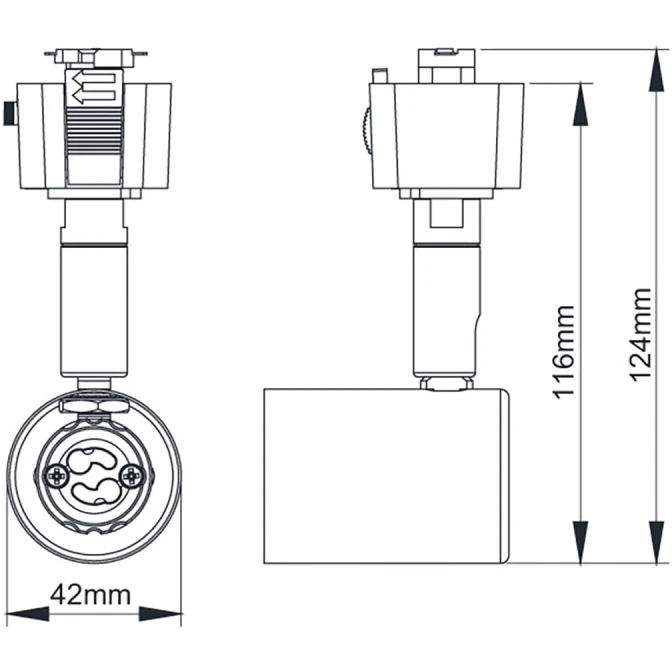 KSR6520BLK Escala Pro GU10 Track fitting, Steel body, 50W Max, less lamp, Black finish · · · Escala · · Single Circuit track fitting · · GU10 lampholder · · IP20 · · 240V 16A Rating · · Black · · For retro fit GU10 Lamps