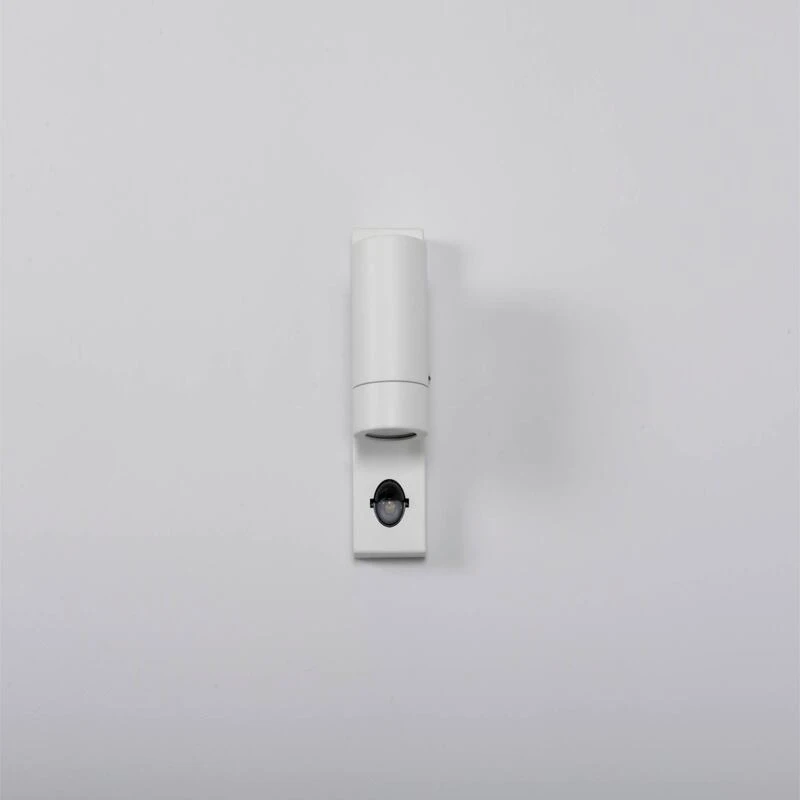 GU10 PIR Single Wall Light White- GU10- 35w Max- PIR- Suitable for GU10 LED Retrofit Lamps- Not suitable for high saline areas- Body: Cast Aluminium- IP44
