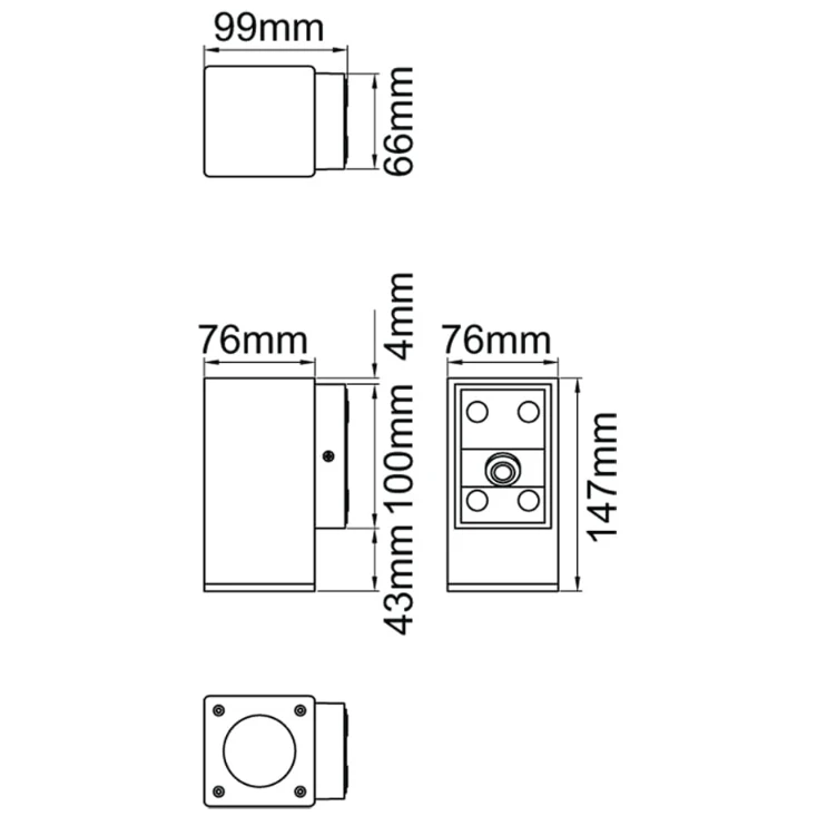 KSR1502BLK Norcia Single Square GU10 Wall light, Polycarbonate/ABS body, Suitable for LED Energy saving lamps, Supplied less lamps, Black finish · · · Polycarbonate/ABS Suitable for high saline areas · · Suitable for retrofit GU10 LED lamps 9W GU10 LED Max · · GU10 lampholder · · IP65 · · 9W LED Max · · Black · · Polycarbonate/ABS body · · Class II · · 1yr Warranty