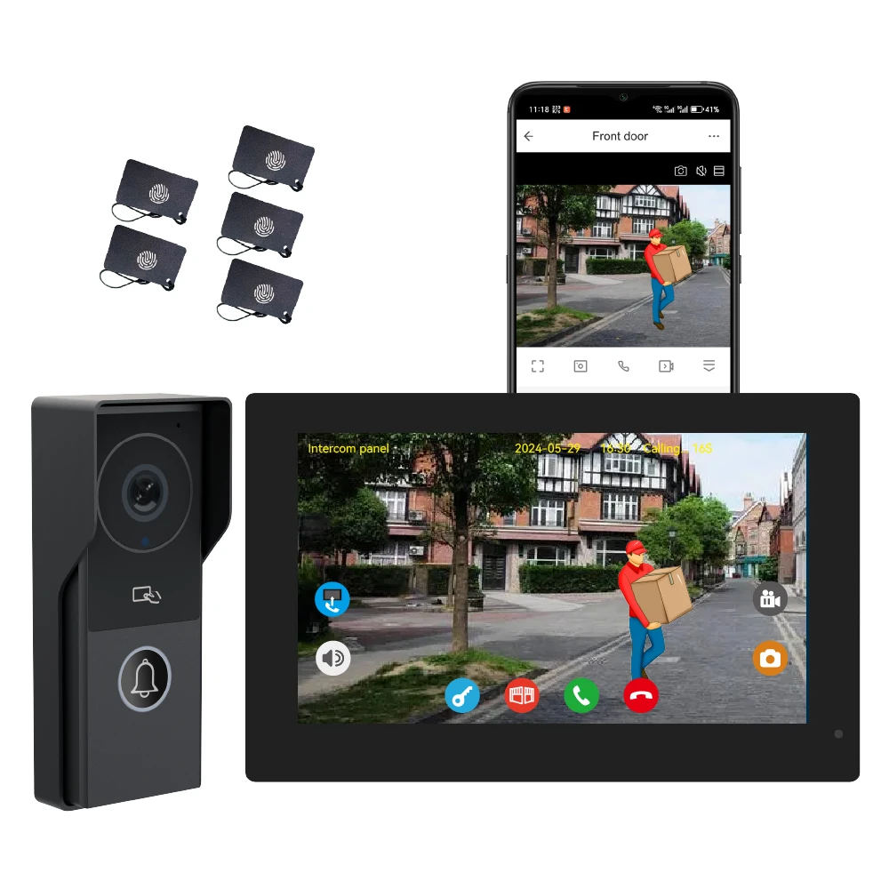Product Description KW06 TUYA Smart 2 Wired Doorbell Camera with Monitor Video Doorbell Intercom System with 1080P 7inch Touch Screen 130 Wide Angle 2-Wire Digital Video Intercom Kit – See, Talk, & Unlock from Anywhere! Bullet Points: ✅ 7″ IPS Touchscreen – Crystal Clear Video & Easy Control ✅ 2-Wire Setup – No Polarity, Easy DIY Installation in Minutes! ✅ Smart Human Detection – Auto-Record Videos/Photos When Someone Approaches ✅ Free App Control – Answer Calls & Unlock Doors from Your Phone, Anywhere! ✅ RFID & Smart Badges – Keyless Entry for Your Family ✅ Connect up to 24 Cameras –Expand Your Home Security System ✅ Weatherproof & Durable – IP54 Rated, Works from -30°C to +70°C Why Choose Our Video Intercom Kit? uD83DuDD39 Easy Installation & No Polarity Forget complicated wiring! With just 2 wires and no polarity issues, you can install this system yourself – no electrician needed. Save time and money! uD83DuDD39 See & Speak to Visitors in HD Whether it’s a delivery person, a guest, or a stranger, you’ll see them clearly on a 10 inch IPS touchscreen. Day or night, the wide-angle camera and IR LEDs ensure a sharp image. uD83DuDD39 Smart Human Detection & Recording The intercom panel detects people automatically and can record video or take photos – so you always know who came by. Set motion zones to avoid false alerts. uD83DuDD39Control Everything from Your Phone Download the Tuya Smart / Smart Life App and connect your intercom to Wi-Fi. Answer calls from anywhere Unlock the door or gate remotely Share access with up to 20 app users View live footage and playback from your phone uD83DuDD39Keyless Entry with RFID Badges Includes 5 RFID badges for keyless access. Just tap to unlock – perfect for family members or trusted visitors. uD83DuDD39 Expandable & Compatible Add up to 24 ONVIF or RTSP cameras to the same system. Perfect for growing your smart home security network. Specification Parameter KW06 TUYA Smart 2 Wired Doorbell Camera with Monitor Video Doorbell Intercom System with 1080P 7inch Touch Screen 130 Wide Angle Monitor Screen 7-inch IPS Touchscreen Camera Resolution 2 Megapixels (CMOS Color Sensor) Video Quality 1024 x 600 px, H.264 Decoding Connectivity 2.4 GHz Wi-Fi (IEEE 8111 b/g/n) Power Supply 24V, 1A (Shared for 1 panel & 2 monitors) Power Consumption Monitor: 3.5W App Support Tuya Smart / Smart Life (Up to 20 users) Smart Features Human Detection, Motion Zones, Auto Photo/Video Recording Access Control RFID Badges (5 included, supports up to 100), Remote App Unlock Wiring Simple 2-Wire Setup (No Polarity) Weatherproof IP54 Rated (Suitable for Outdoor Use) Operating Temp. -30°C to +70°C