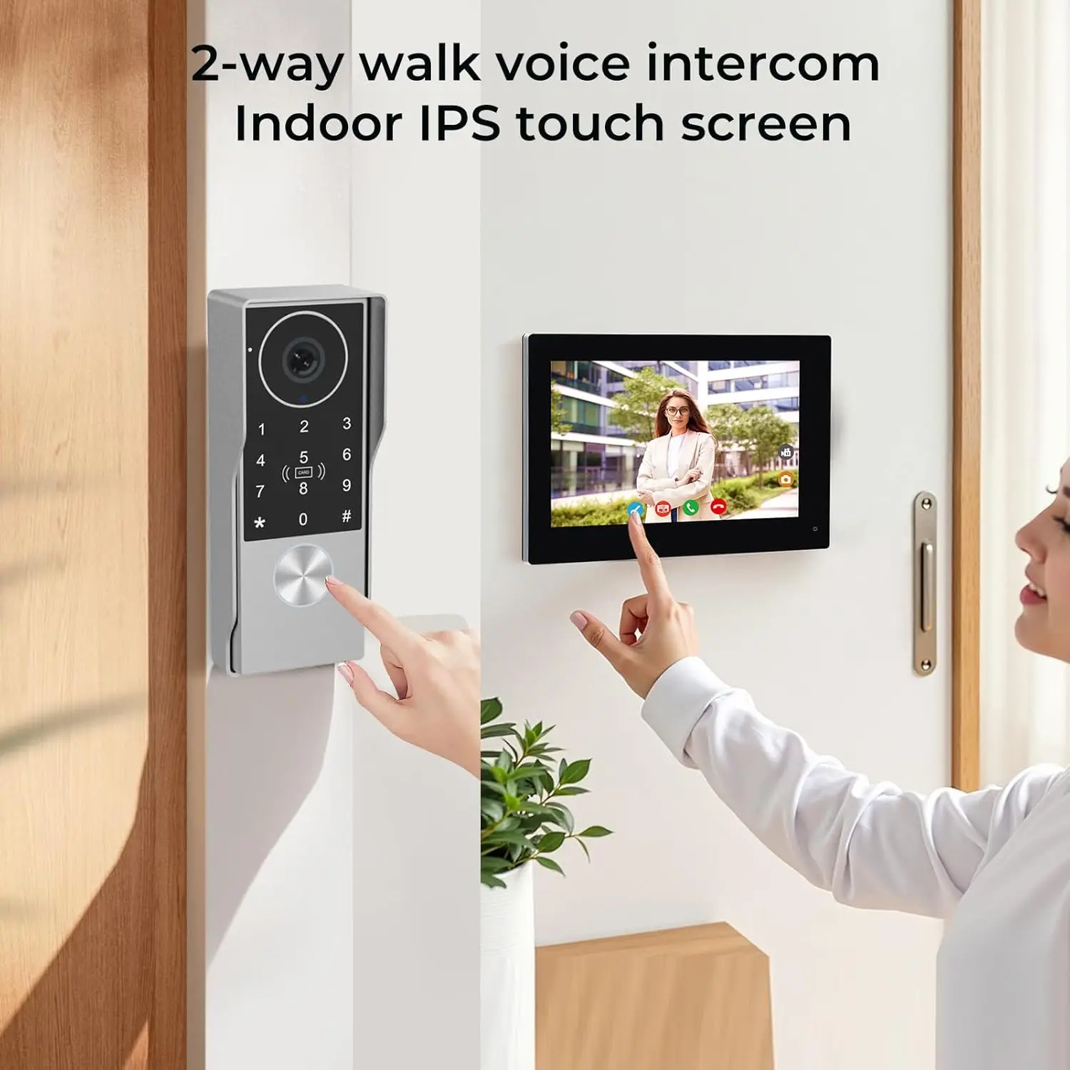 KW07 Tuya 1080P 7/10 Inch Touch Monitor Fingerprint Unlock Video Intercom Doorbell Security System for Villa Home