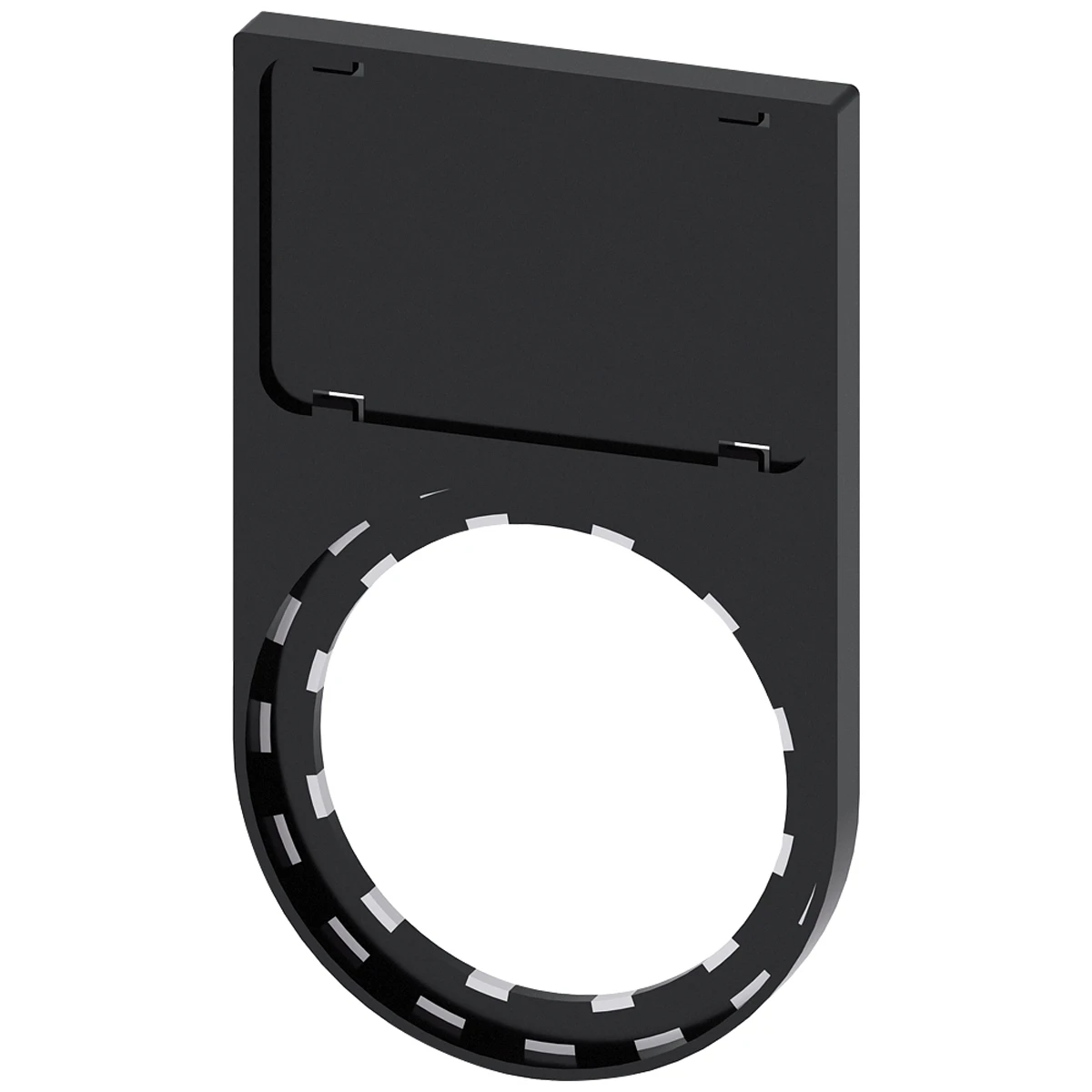 Siemens Label holder made up of black plastic material and is suitable for labelling plates measuring at 17.5 x 27mm. · · · Mounting type of label: Snap-on · · IP66/67/69 Degree of protection · · Shock resistance: Category 1, Class B · · Vibration resistance: Category 1, Class B