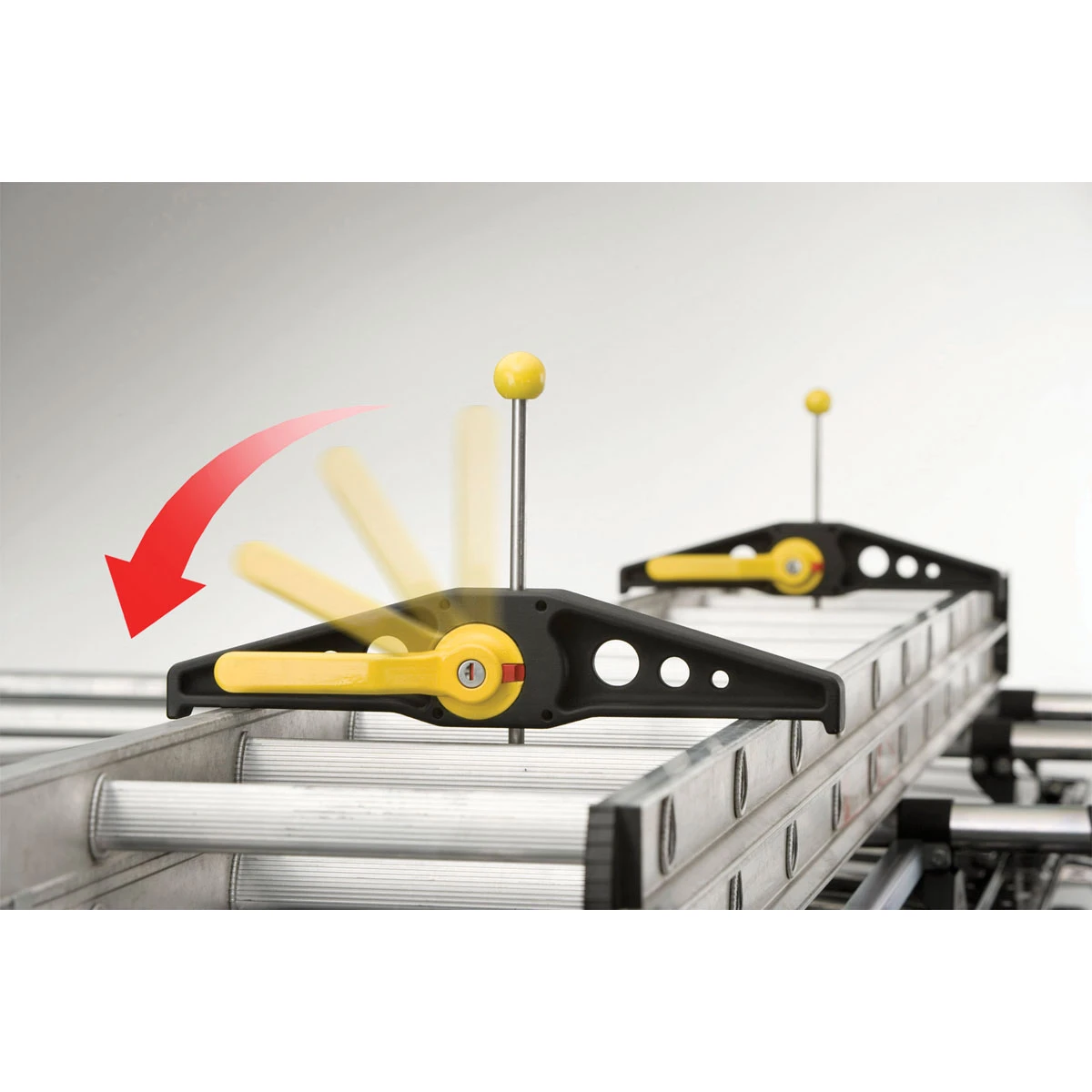 Rhino Lockable Safe Ladder Clamp is an innovative one touch ladder clamping method which is 5 times faster than traditional screw-down ladder clamps. Manufactured using a composite beam and stainless steel anchor hook for excellent corrosion resistance and strength. Integral locks mean no more lost padlocks and come supplied with 2 keys. SafeClamp has been life cycle tested and certified TUV GS safety approval alongside a 20g crash test. · · · Accommodates up to 3 nested ladder sections · · Locks are provided on each clamp to secure the ladders to the roof bars · · Crash tested to 20 G-Force and TUV/Din approved · · Rhino SafeClamps are supplied as a pair and will accommodate up to 3 nested ladder sections · · Rhino SafeClamps are supplied as a pair and will accommodate up to 3 nested ladder sections