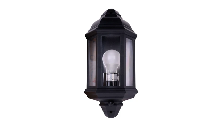 · · Outdoor lantern for a range of residential applications · · Polycarbonate body with clear glass diffuser, suitable for coastal regions · · Incorporates PIR with a range of up to 8m x 120° and an auto off/manual over-ride switching function · · Supplied without lamp · · E27 lampholder · · Maximum lighting load 100W · · Supplied with fixing screws and wall plugs · · IP44 rating for protection from solid objects larger than 1mm and splashes of water from any direction · · BS EN 60598-1 · · 2-year guarantee (excl. lamp)