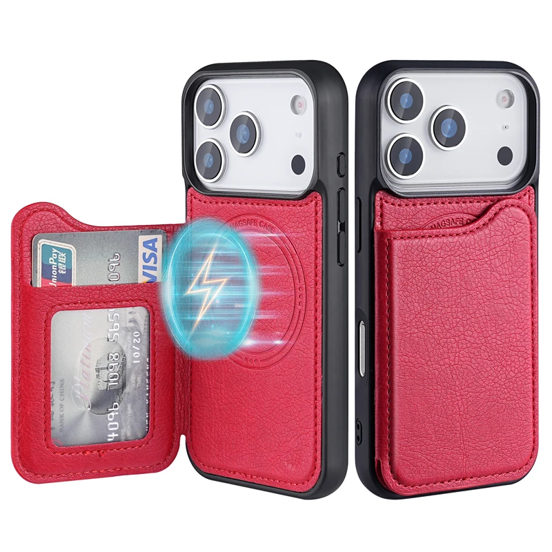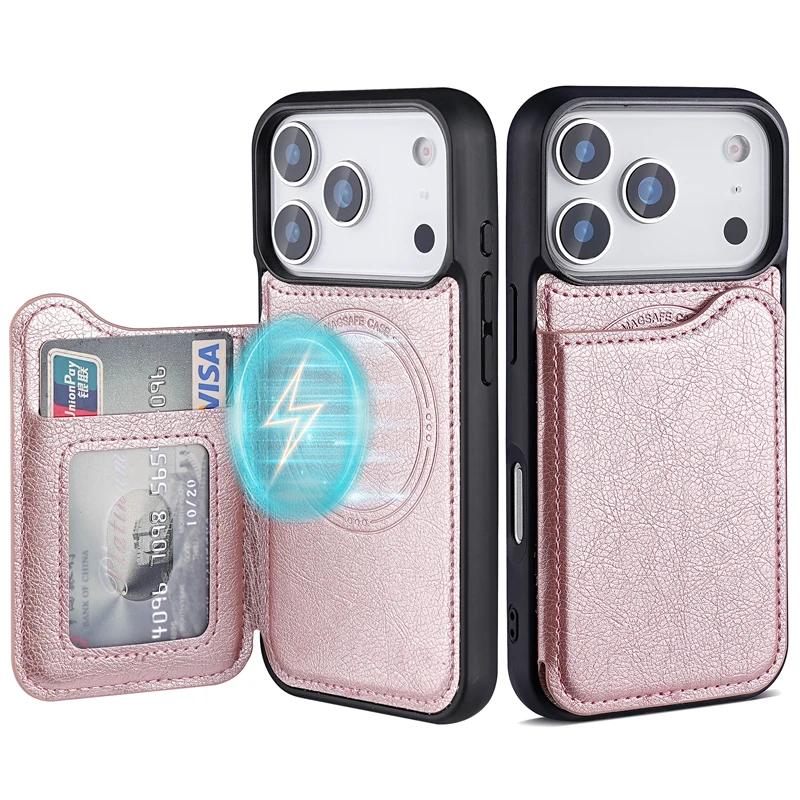 Leather Magnetic Wallet Case Wireless Charge Foldable for 13/14/15/16/17 Pro/Max Customizable Logo Card Holder Pack of 10