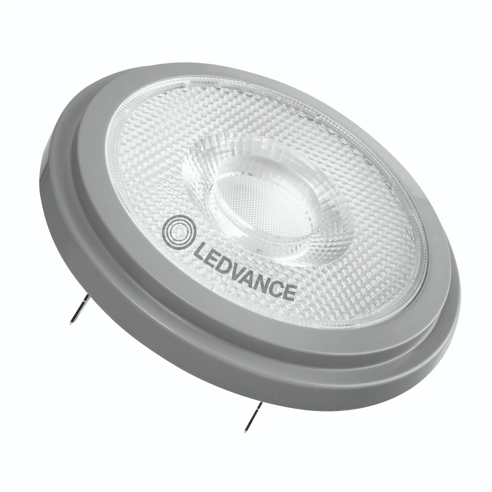The Ledvance led ar111 75 24 degree 11.7w 930 3000k g53 reflector lamp is the ideal replacement for your halogen AR111 bulbs. It offers a number of advantages over traditional halogen bulbs.This particular LED AR111 bulb also has a narrow beam angle of 24 degree, making it ideal for spot lighting and accent lighting.- Quick, simple and safe replacement without rewiring- Design, dimensions, luminous flux comparable to an incandescent or halogen lamp- Low maintenance costs thanks to long lifetime- No UV and near-IR radiation in the light beam- Stepless dimming- Very high dimmer compatibility- Compatible with many common conventional and electronic control gears- Instant 100% light, no warm-up time