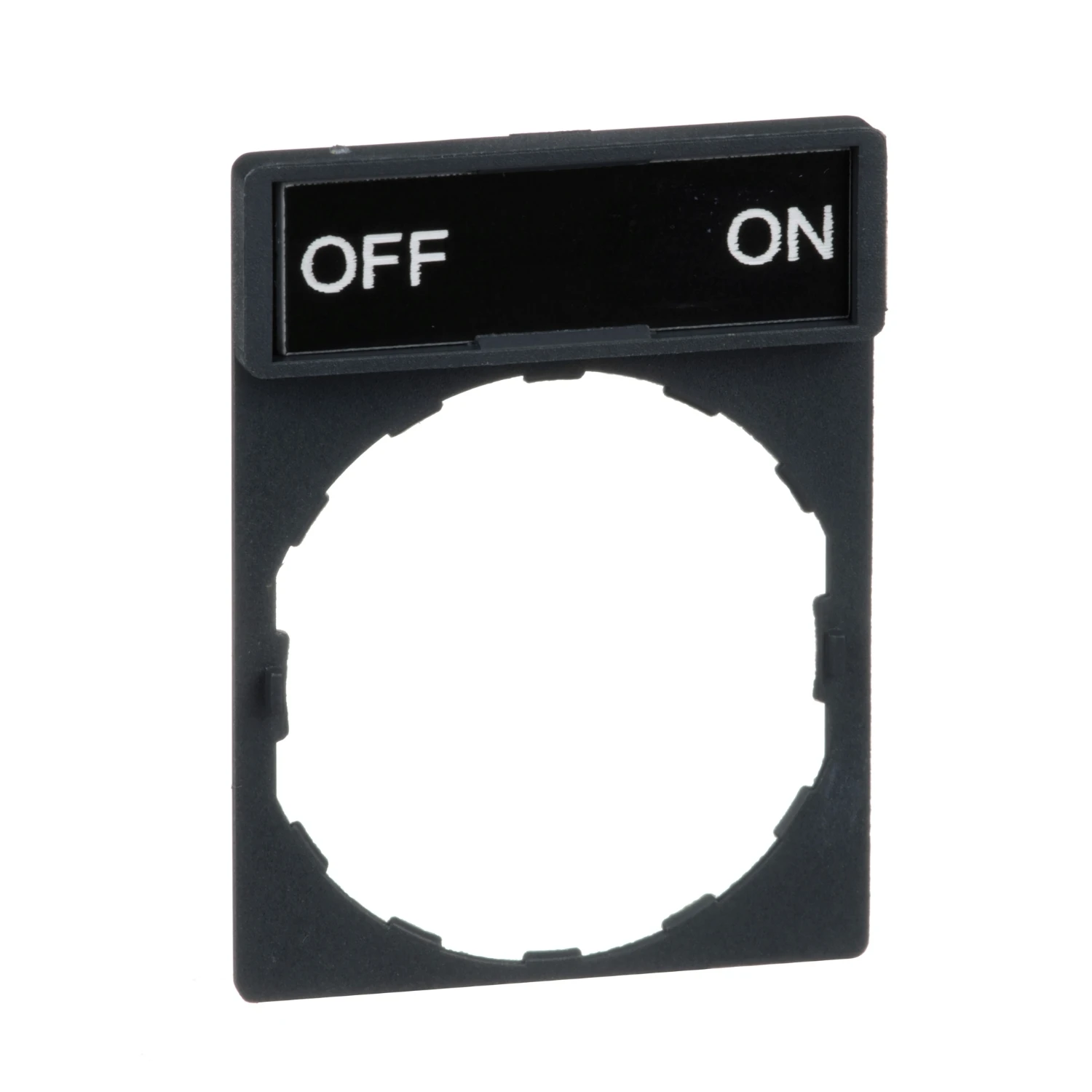 This Harmony ZBY legend holder has black or red background and is marked with -OFF-ON- lettering. It is compatible with Harmony XB4 and XB5 push buttons and pilot lights. This legend holder allows you to customize the control unit with an engraved tag, in line with the design approved by your customer. It is compatible with any standard 22mm Harmony control or signalling unit. It provides clear and resilient symbol marking on the label, with high contrast. · · · This Harmony ZBY legend holder has black or red background and is marked with “OFF-ON” lettering. · · It is compatible with Harmony XB4 and XB5 push buttons and pilot lights. · · This legend holder allows you to customize the control unit with an engraved tag, in line with the design approved by your customer. · · It is compatible with any standard 22mm Harmony control or signalling unit. · · It provides clear and resilient symbol marking on the label, with high contrast.