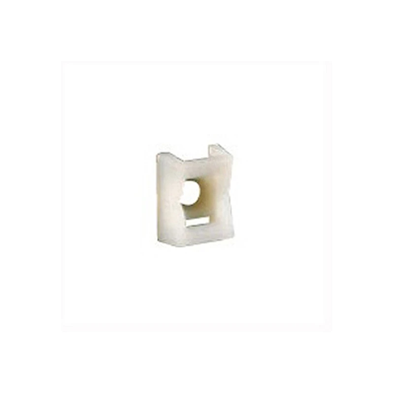 Technical Specifications Technical Specifications Mounting base for cable ties Colour Colourless Material Plastic Material qualifier Polyamide (PA) Width 16.5 mm Height 8.8 mm Suitable for cable tie width to 9 mm Length 21 mm Min. tensile strength – N Diameter mounting hole 5 mm For maximum bundle diameter – mm Working temperature -25 – 85 °C Detectable No