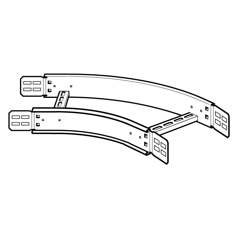Technical Specifications Technical Specifications Bend for cable ladder Material Steel Type of side wall Channel (open) Bend model Smooth bend Change of direction Horizontal Model Integrated coupler Surface protection Hot dip galvanized Type of rung Slotted channel Suitable for cable ladder height 100 mm Angle 45° Suitable for cable ladder width 490 mm RAL number – Inner radius 300 mm Suitable for circuit integrity No Side wall perforation No Hinged No