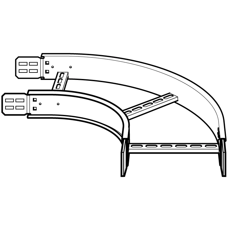Technical Specifications Technical Specifications Bend for cable ladder Type of side wall Channel (open) Material Steel Bend model Smooth bend Change of direction Horizontal Model Integrated coupler Type of rung Slotted channel Angle 90° Surface protection Hot dip galvanized Suitable for cable ladder height 100 mm Suitable for cable ladder width 940 mm RAL number – Inner radius 300 mm Hinged No Side wall perforation No Suitable for circuit integrity No