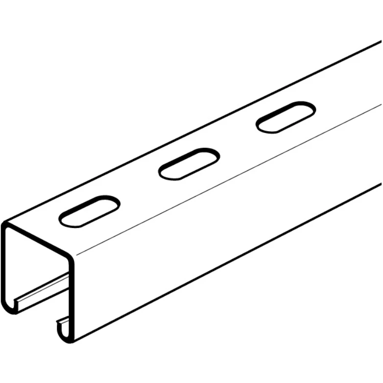 Technical Specifications Technical Specifications Channel Material Steel Model Single channel Profile shape C-profile Surface protection Hot dip galvanized Height 41 mm Type of perforation Slotted Width 41 mm Material thickness 2.5 mm Area moment of inertia Iy – cm4 Load bearing capacity – kN Slit width 28 mm Hole width 13 mm Area of inertia Iz – cm4 Moment of resistance Wy – cm³ Layer thickness surface protection – µm Moment of resistance Wz – cm³ RAL number – Weight – kg Length 6000 mm Suitable for circuit integrity No Snap-off No With toothing No · Manual: https://asset.eezybridge.com/ad7e7626-8f4a-4edb-b78d-9ca040e321dd/405067