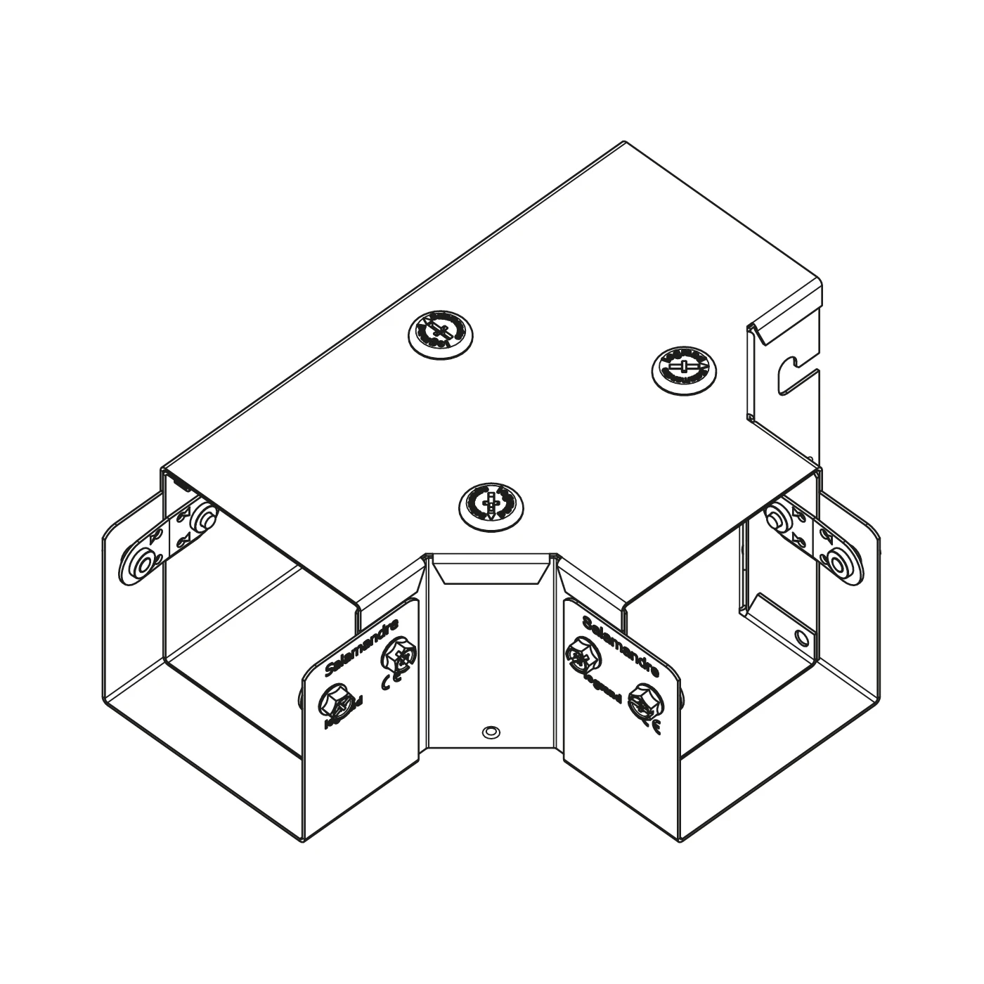 MGIP44AGT is a 1-compartment Gusset Top Lid Tee. It is suitable for Salamandre® distribution IP4X trunking. It is supplied with lid, lid fixings and connecting screws pre-fitted and backed off. Include a bridge flyover complete with fixing bracket and scr · · · Simple Installation · · Number of inlets: 3 · · IP4X rating · · Single compartment