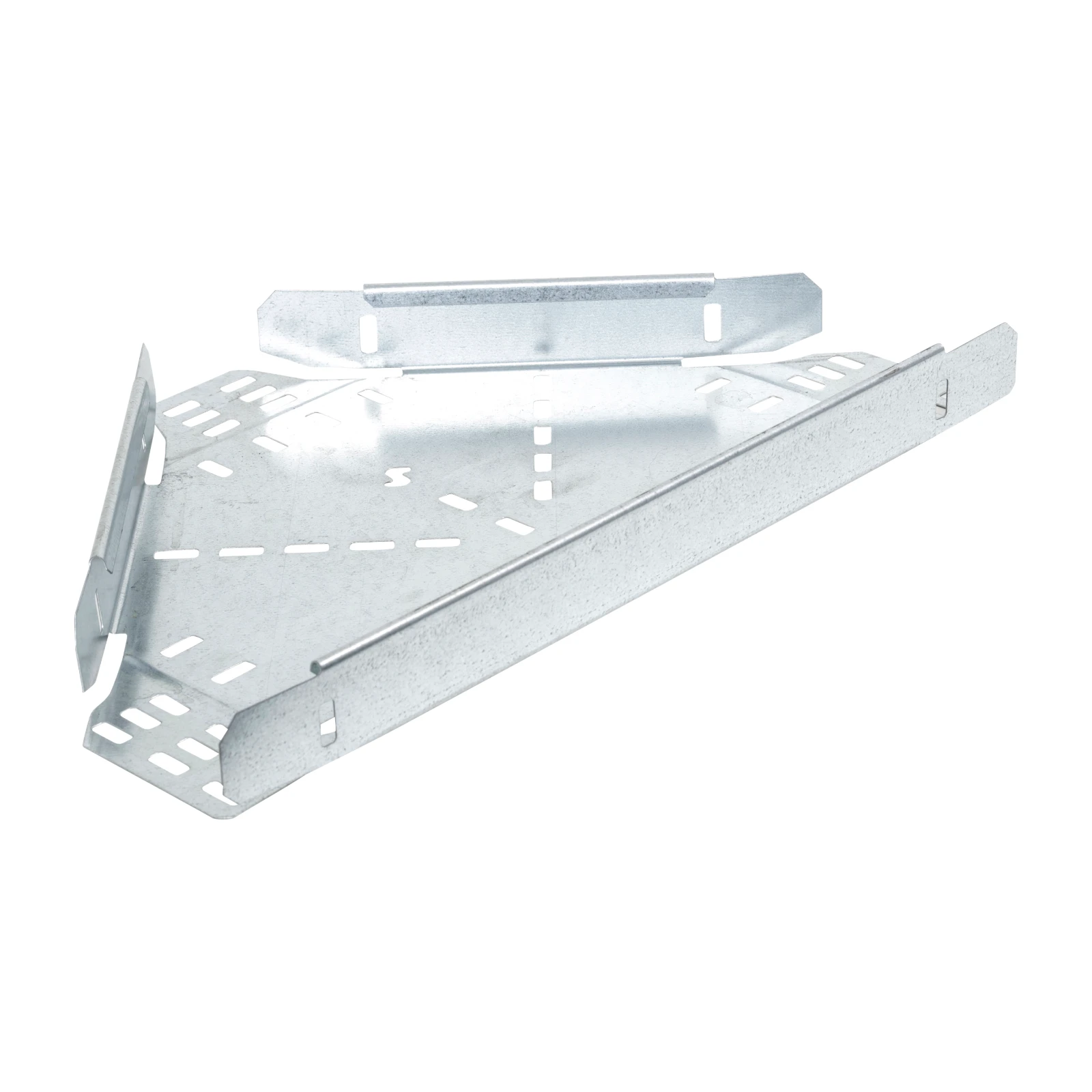 Technical Specifications Technical Specifications Tee for cable tray Material Steel Construction type Horizontal tee Colour Grey Model Integrated coupler Surface protection Pre-galvanised RAL number – Suitable for cable tray width 150 mm Suitable for cable tray height 50 mm Inner radius 125 mm Working temperature -20 – 120 °C NATO-mounting holes No Suitable for circuit integrity No Stainless steel, pickled No · Technical Data Sheet – Click to Download