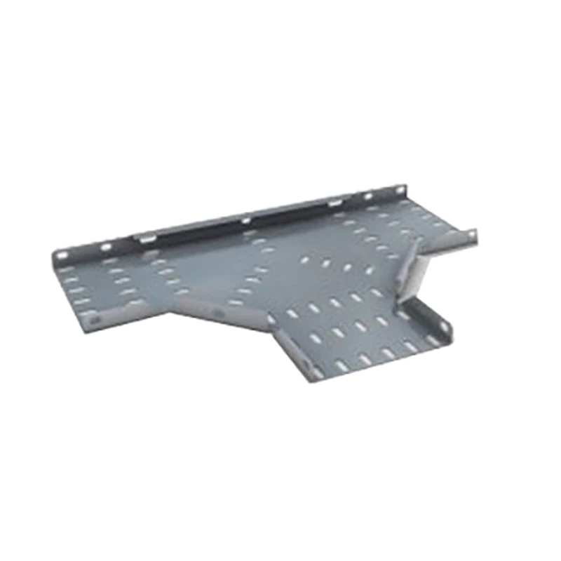 Technical Specifications Technical Specifications Tee for cable tray Construction type Horizontal tee Material Steel Colour Grey Model Integrated coupler Surface protection Hot dip galvanized Suitable for cable tray width 225 mm Suitable for cable tray height 50 mm Inner radius 125 mm RAL number – Working temperature -20 – 120 °C Suitable for circuit integrity No Stainless steel, pickled No NATO-mounting holes No · Technical Data Sheet – Click to Download