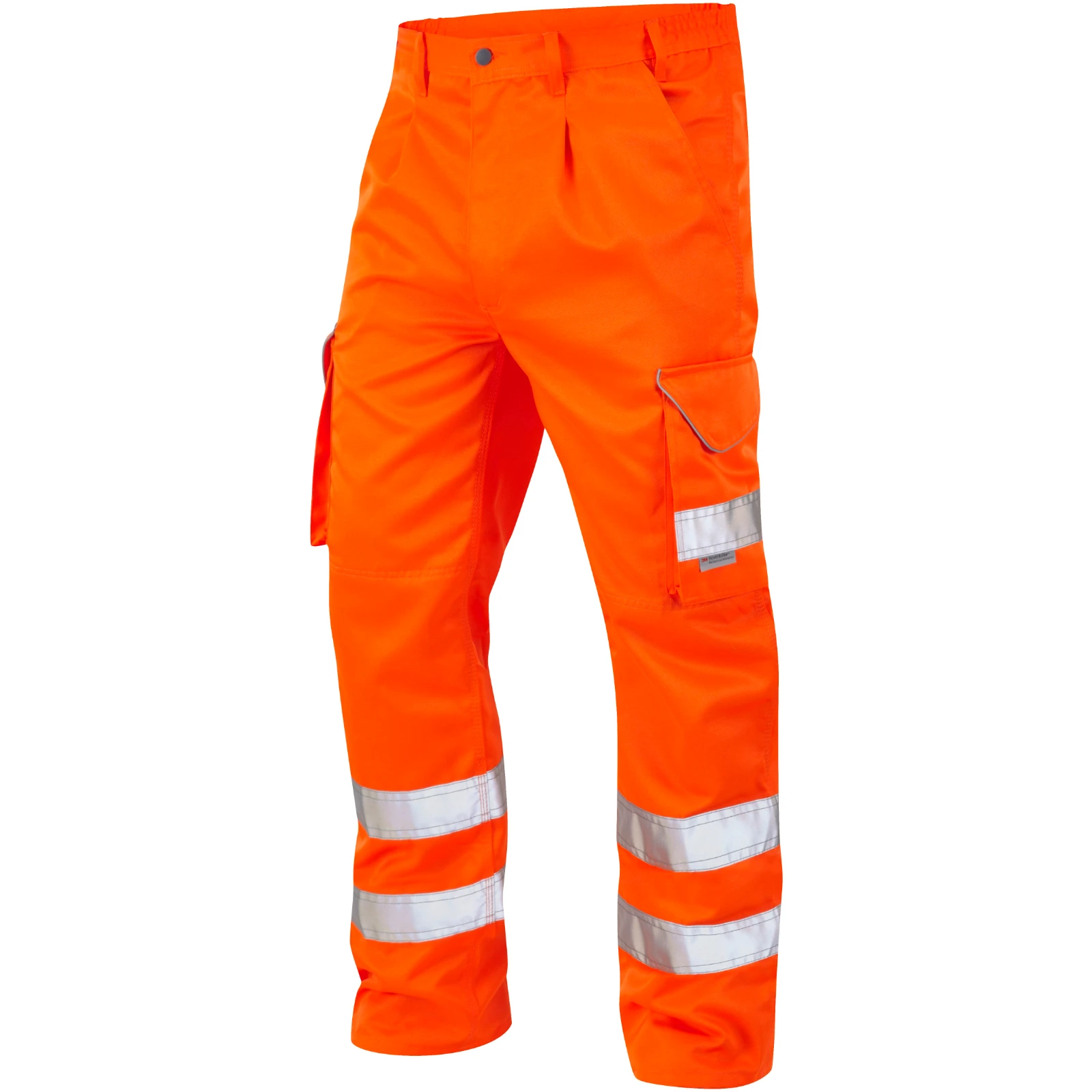 ISO 20471 Class 1 & RIS-3279-TOM cargo trousers that are made for wearing when doing highway maintenance or construction work. · · · Triple stitched seams · · Quadruple stitched reflective tape · · Internal knee pad pockets · · 7 belt loops · · YKK zip fly with metal button · · 3M Scotchlite reflective tape · · Side waist elastic · · 280gsm fabric · · 20% cotton & 80% polyester · · Stain and water repellent finish