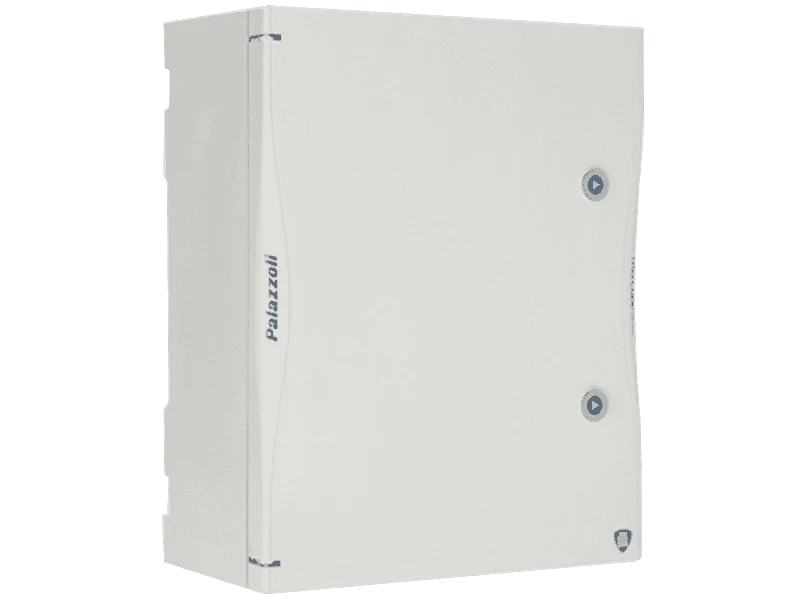 Size 3, 54 module, distribution and automation board for industrial applications. IP66 rated Glass Reinforced Plastic (GRP) enclosure with a stainless steel back plate. The enclosure is durable, reliable and convenient, offering generous wiring space. All elements are simply fixed with the “Click Cube” snap-in system. Includes key with triangular insert and screw cover caps for double insulation. Allow an opening wider than 180°. · · · Size 3 , 54 Module · · IP66 Protection Rating · · IK10 impact resistance as per IEC/EN 62264 · · Thermosetting (GRP) material · · Supplied with Steel Back Plate · · H:506mm x W:449mm x D:220mm