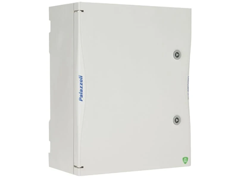 Size 4, 72 module, distribution and automation board for industrial applications. IP66 rated Glass Reinforced Plastic (GRP) enclosure with a stainless steel back plate. The enclosure is durable, reliable and convenient, offering generous wiring space. All elements are simply fixed with the “Click Cube” snap-in system. Includes key with triangular insert and screw cover caps for double insulation. Allow an opening wider than 180°. · · · Size , 72 Module · · IP66 Protection Rating · · IK10 impact resistance as per IEC/EN 62265 · · Thermosetting (GRP) material · · Supplied with Steel Back Plate · · H:655mm x W:450mm x D:220mm
