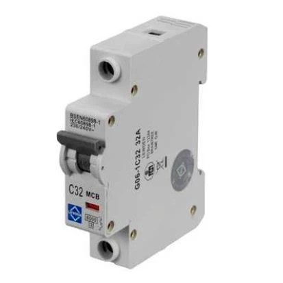 Single pole, 32A Miniature Circuit Breaker (MCB) with a 6kA breaking capacity and C trip curve. Suitable for DIN rail mounting. · · · 32A · · Single Pole · · C Curve · · 1 Module