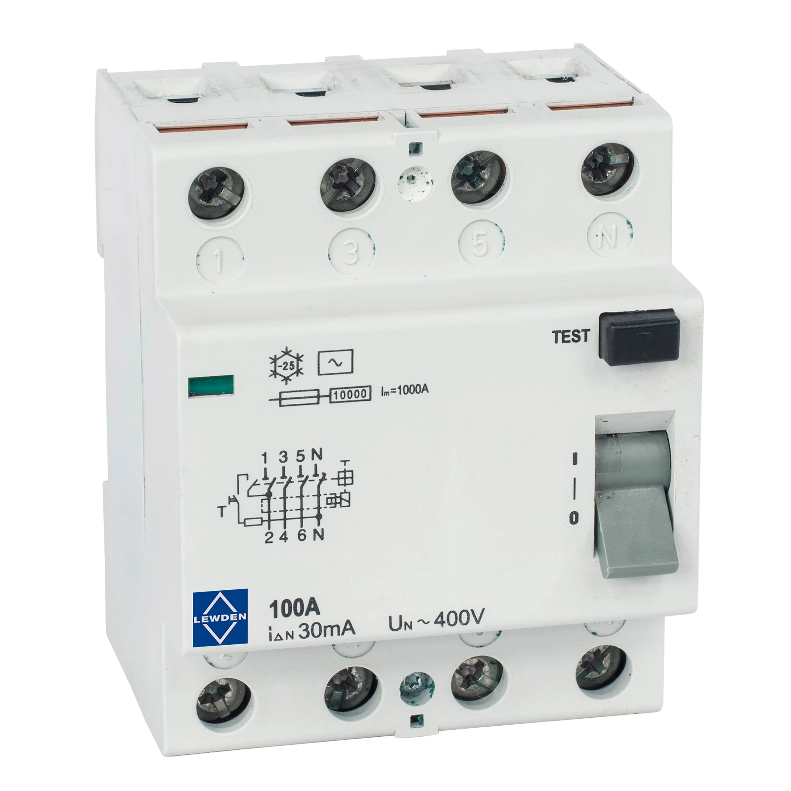 Lewden RCD10-100/30/4A RCD 100A, 4P, 30mA, 10kA RCD