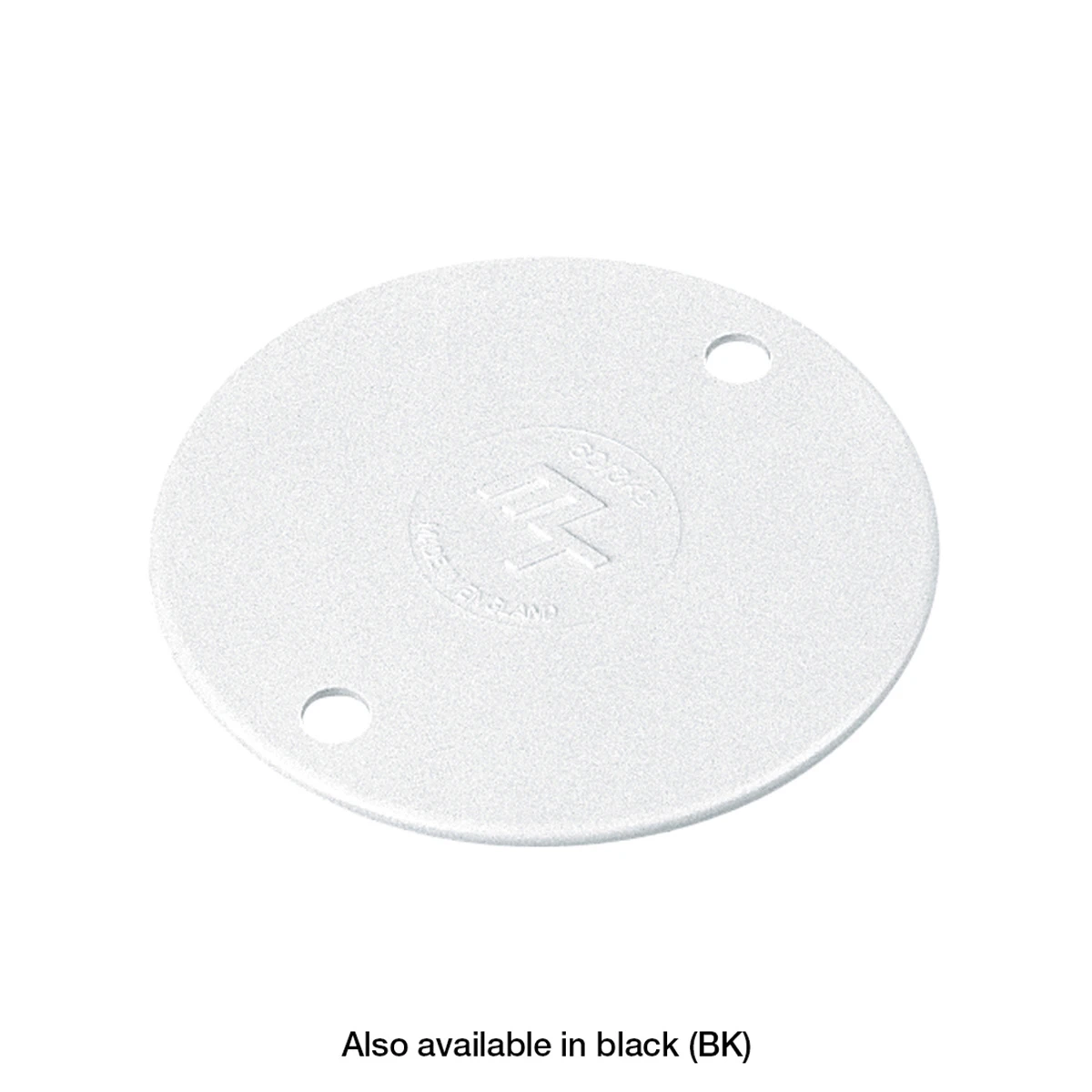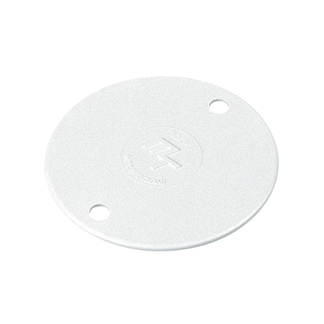 Circular cover lid made up of a white polyvinyl chloride (PVCu) housing body, designed for use as an accessory for electrical conduits. Suitable for use in industrial and commercial environments. The conduit boxes can be suspended with loads of up to 3kg · · · Durable and impact resistant · · Easy to assemble and install · · Fixing centre is 50.8mm and fitted with M4 brass insert. · · Perfect for educational buildings, offices, workshops and even domestic installations · · All boxes have threaded brass inserts · · Manufactured using 100% recycled material