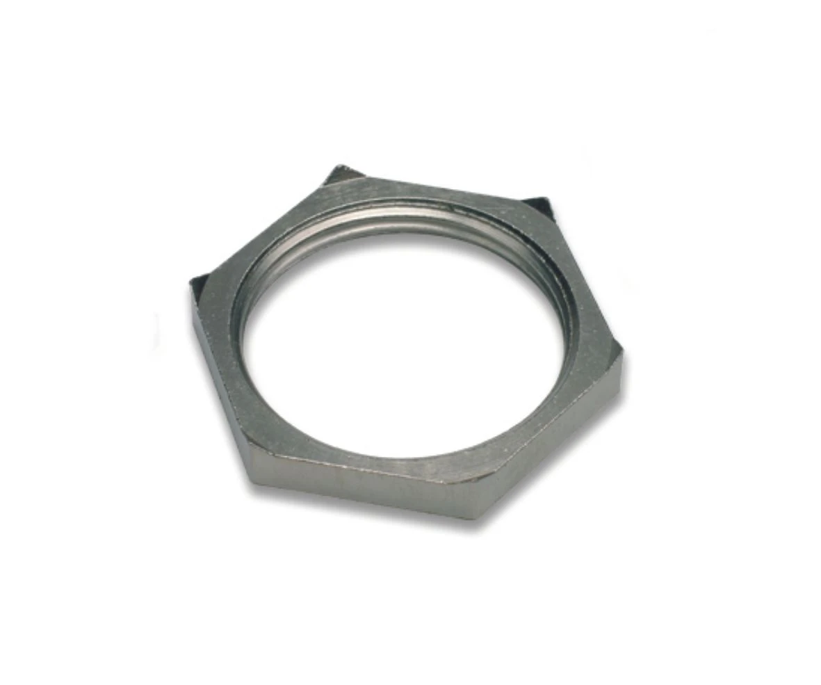 M25x1.5 Nickel Plated Brass EMC Locknut · · · Nickel Plated Brass · · Metric Thread M 1.5 · · -25°C to +100°C Temperature Range · · Serrated Teeth to maintain contact