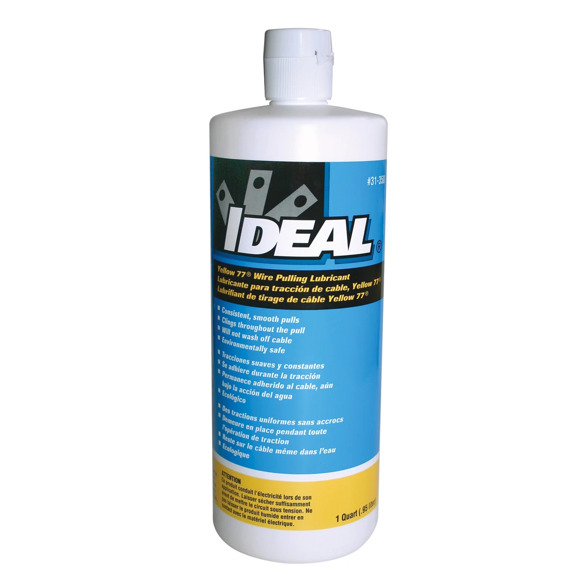 1 Quart (950ml) Wire Pulling Lubricant from Ideal Industries in a squeeze bottle. · · · Wax-based formula provides superior lubricity · · Safe to use with most cable types except low-density polyethylene and semi-conducting jackets · · Won’t break down or separate after repeated exposure to freezing temperatures · · Dries to a thin, non-conductive film that won’t clog conduit · · Clings to cable throughout long pulls · · Easy to apply by hand or with pump · · Creamy texture applies easily and uniformly · · Homogeneous blend requires no mixing · · Won’t dry out – surface coat forms to control evaporation