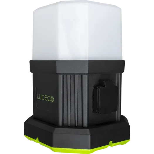 This heavy duty 360° open area site light with 13A power socket from Luceco utilises high efficiency long life LEDs that produce upper bright 7150 lumen (66W) 6500k light output. The IK07 opal polycarbonate diffuser emits a smooth even light spread, lighting up a wide area. Constructed using hard wearing and durable aluminium die cast housing with easy grip carry handle and fold away suspension hanging hook, including the option to mount to a tripod ensures reliability. Features USB-A and USB-C socket entries as well as a 13A UK plug socket to charge and light up the area simultaneously. · · · Driver Type: Fixed Output · · Lumen Output (lm): 7150 · · Max Wattage (W): 66 · · Efficacy (Lm/W): 108 · · Colour Temp (CCT) (K): 6500 · · CRI: >80 · · Lifetime (h): 25000 · · L/B at Life L70: B50 · · L70 Hours (h): 25000 · · Operating Temperature (C): -25°C to +40°C