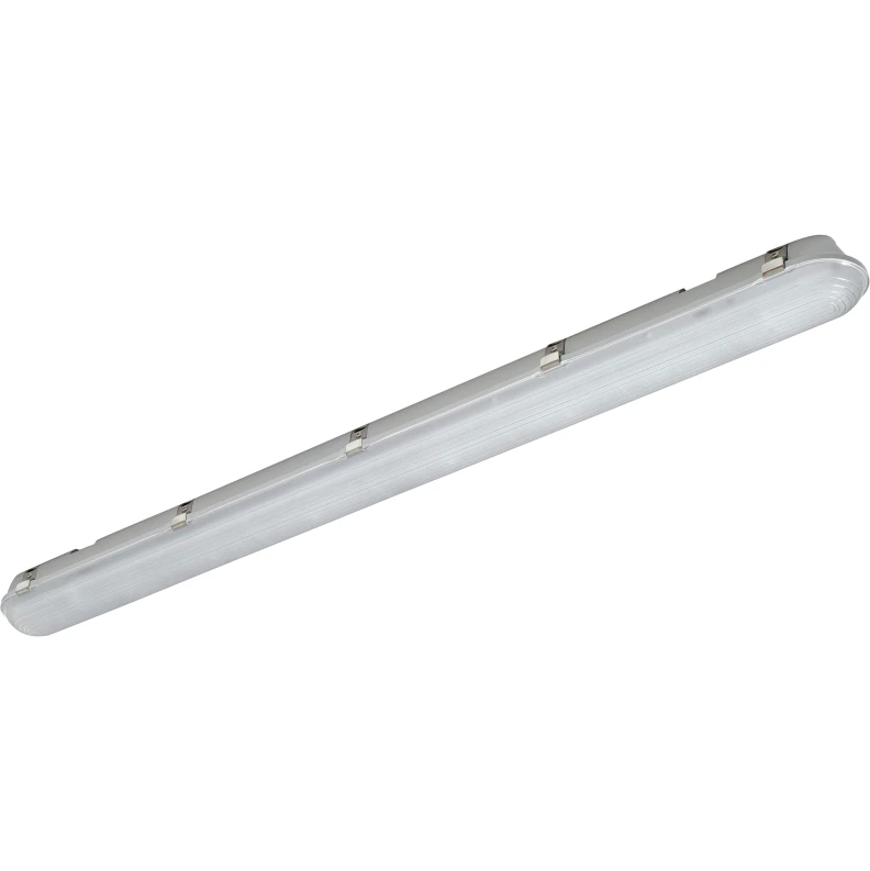 SULTAN 1x24W LED corrosion proof, IP65, 4ft, Grey, 5000K,eme · · · Suitable for workshops, garages, warehouses, car parks, farm buildings, wet areas · · LED replacement for 1 x 36W fluorescent corrosion proof fitting · · 50,000 hour average lamp life · · IP65, can be used for external applications · · Complete with stainless steel clips · · Impact rating of IK08 · · High efficacy of 117lm/W · · Wide ambient temperature operation range of -10C +40C · · 3 hour emergency duration