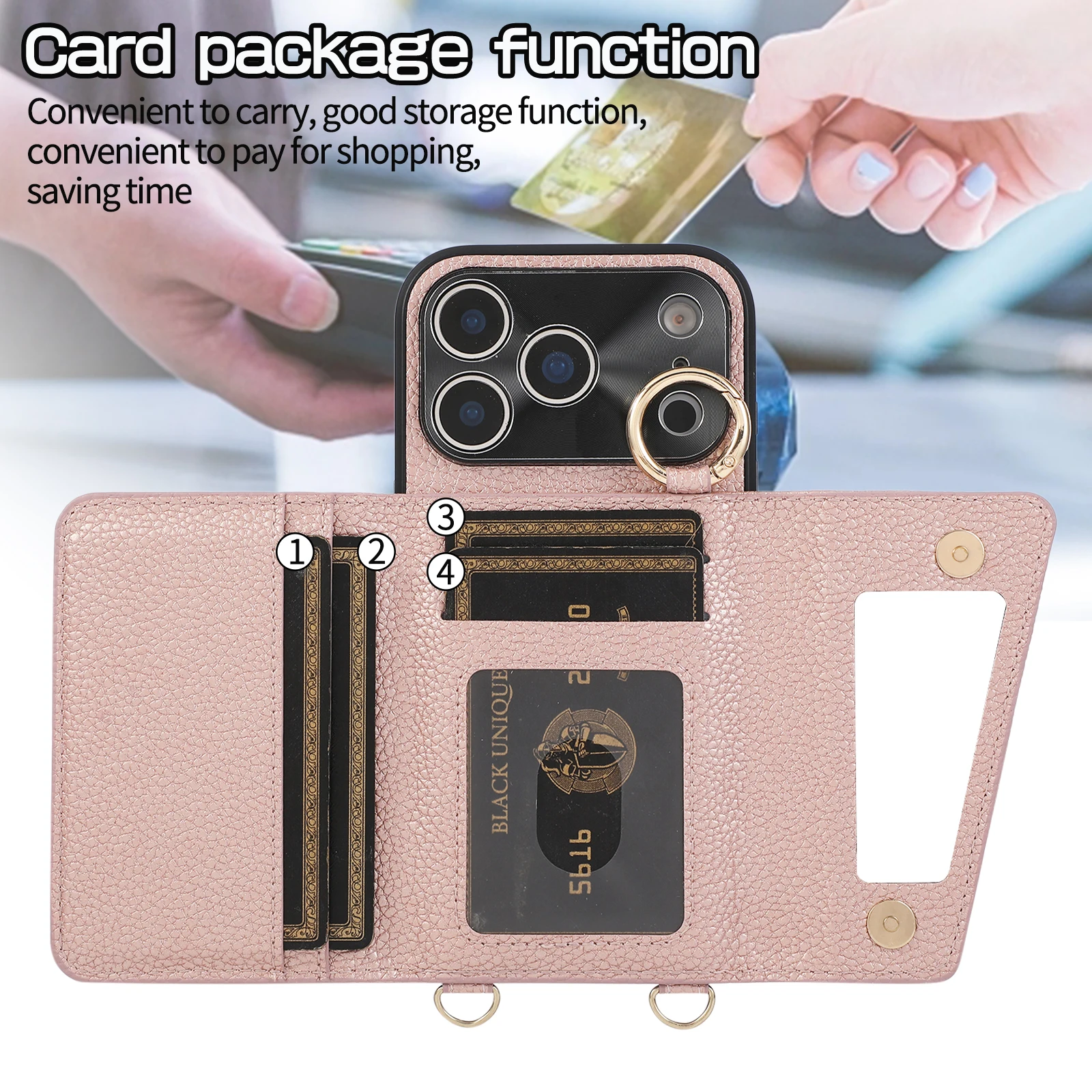 Product Description Equipped with an adjustable crossbody strap, you can simply wear it across your body when going out, eliminating the need to hold your phone or wallet, making commuting and shopping more convenient.