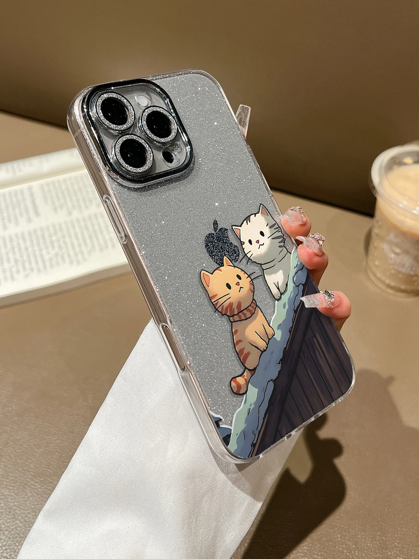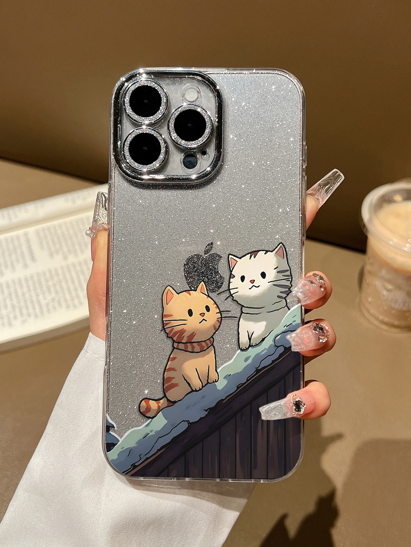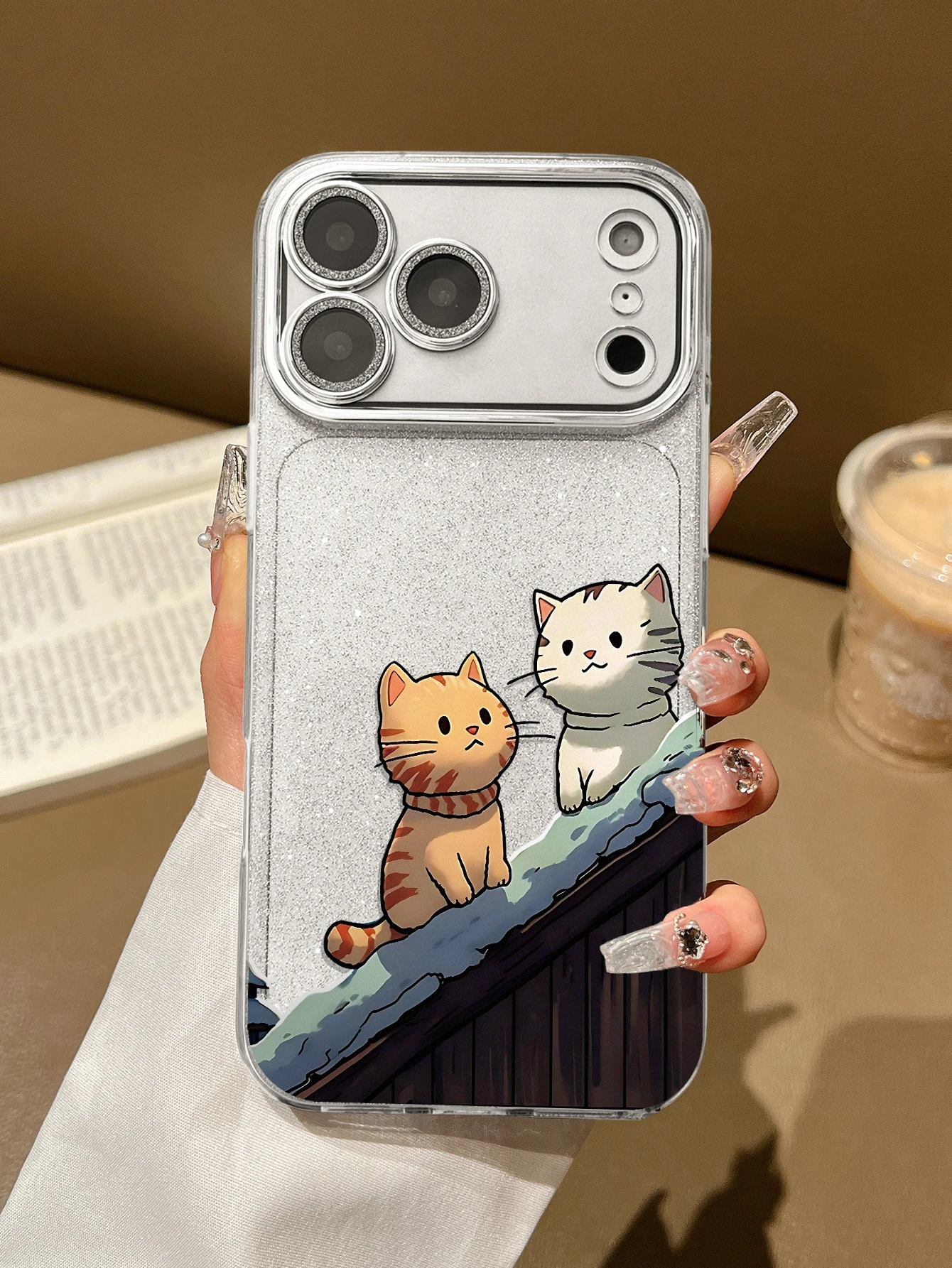 Luxury Glitter Cute Cat TPU Case for 17/16/15/14/13/12/11 Pro Max Magnetic Ring Holder Shockproof Clear Cover Pack of 25