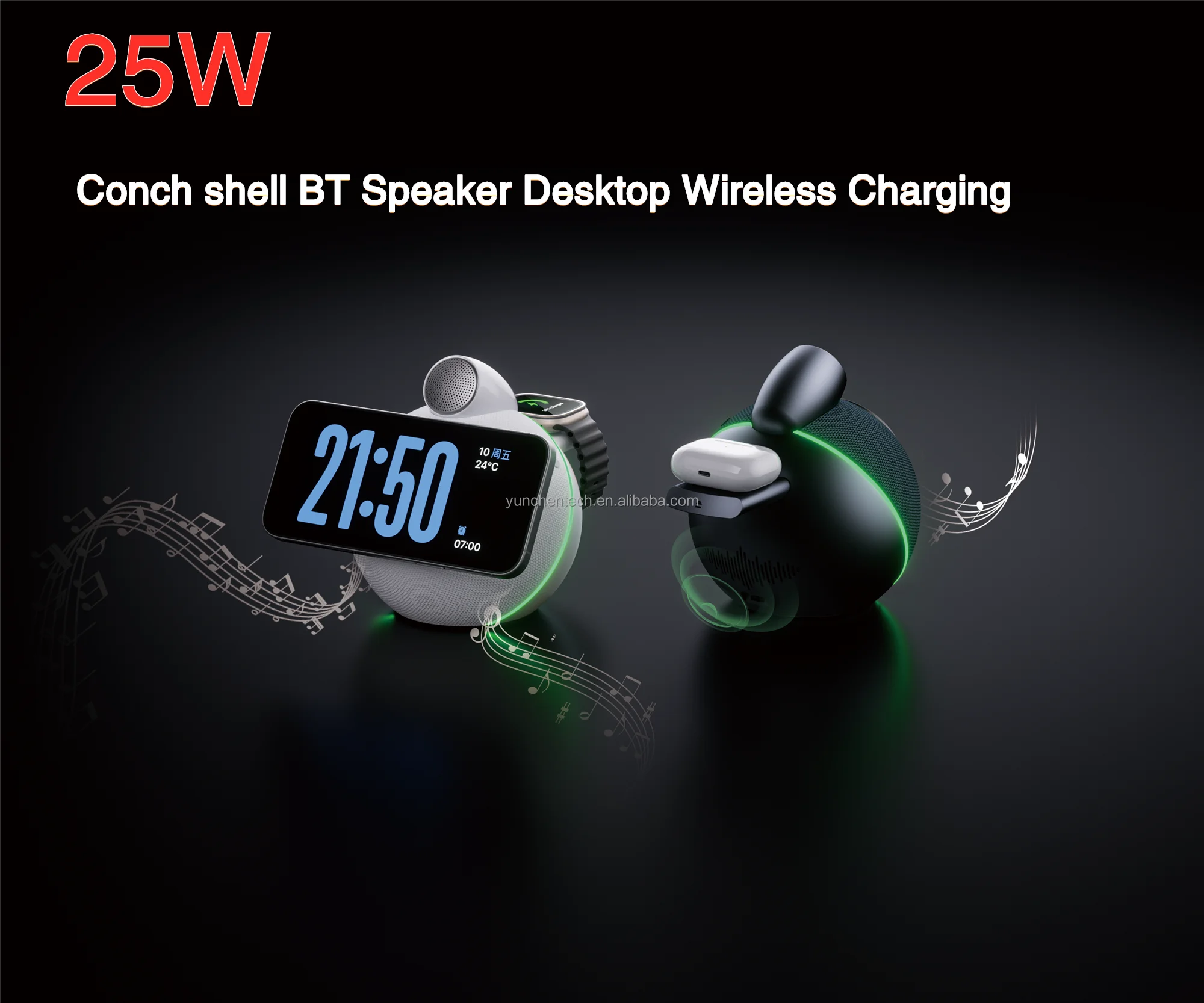 Luxury Multifunctional Conch Shape Wireless Charger With BT Speaker RGB Light 25W Charger Dropshipping X16 for iphone 15 Pro Max