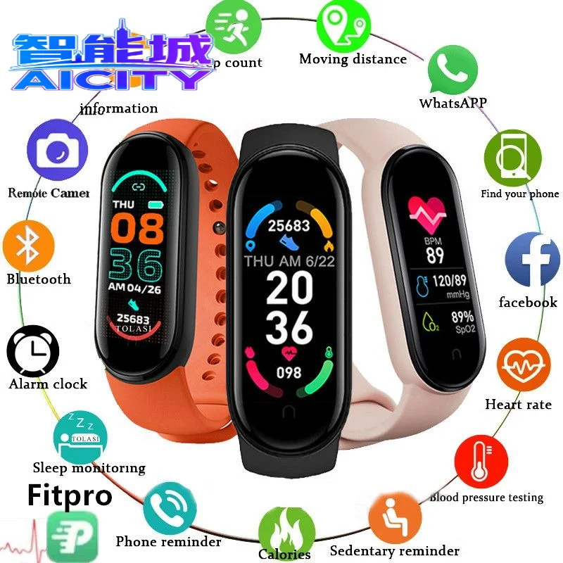 M6 OLED Smart Watch Men Women Android Fitness Sports Band IP67 Waterproof Heart Rate Blood Pressure Monitor Remote Control
