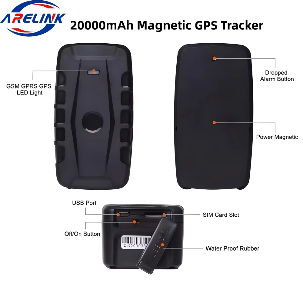 Products Description Product Name Magnetic 4G GPS Tracker 20000mAh Battery for Long Standby Fleet & Asset Management Product Condition New with box Other Supplements Need an additional SIM card to useful Product Benefits Apply for one week’s free SIM data to try Bbrand Image ARELINK GPS tracker 1.